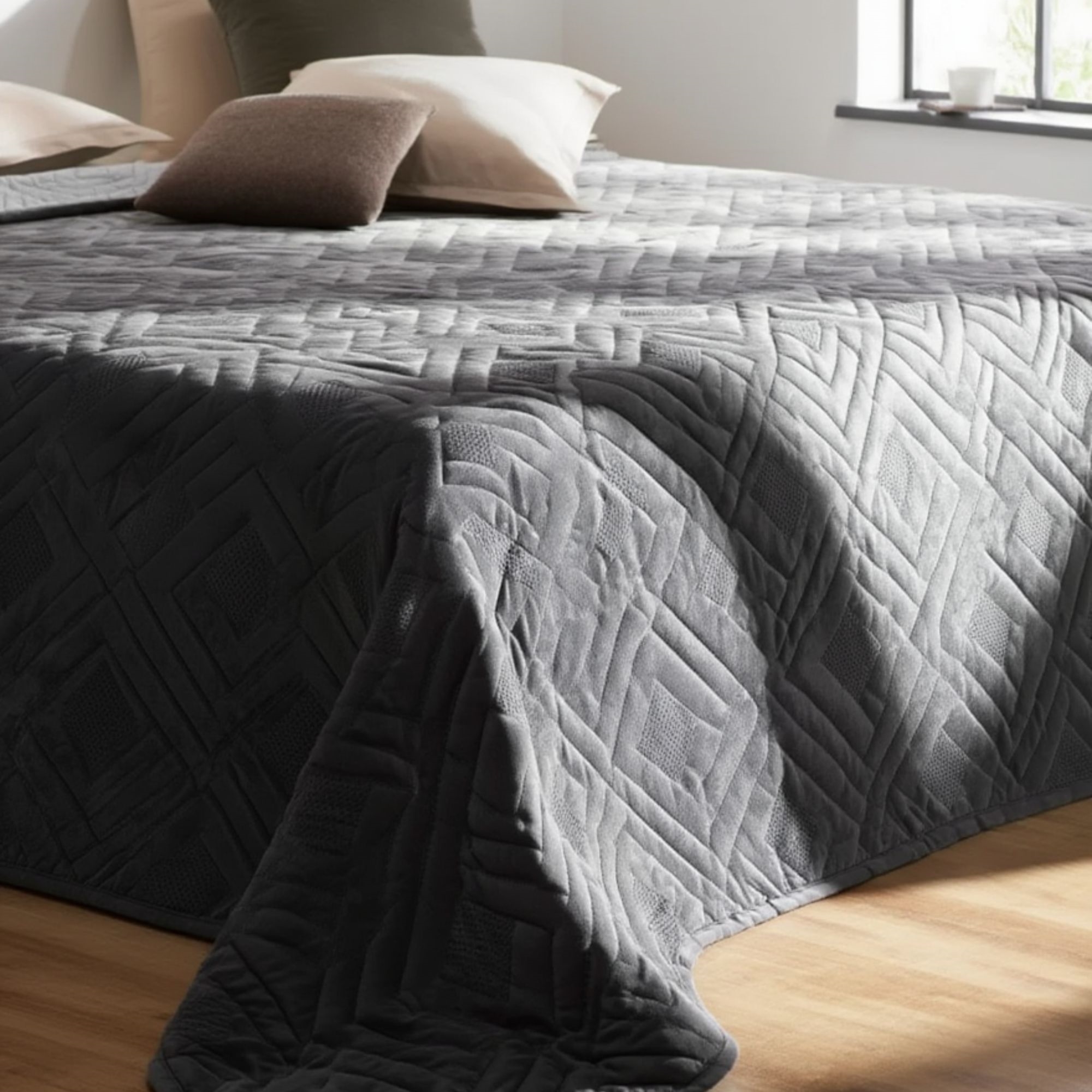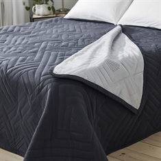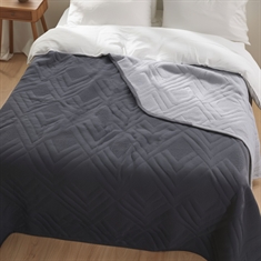Sengetæppe - 220X240 cm - Vendbart Mørkegrå og lysegrå - Tæppe til trekvart seng