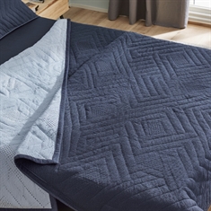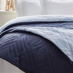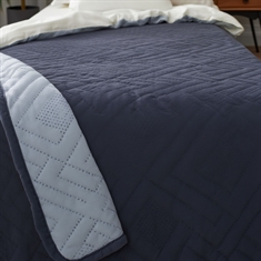 Sengetæppe - 260X240 cm - Vendbart Mørkeblå og lyseblå - Tæppe til dobbeltseng