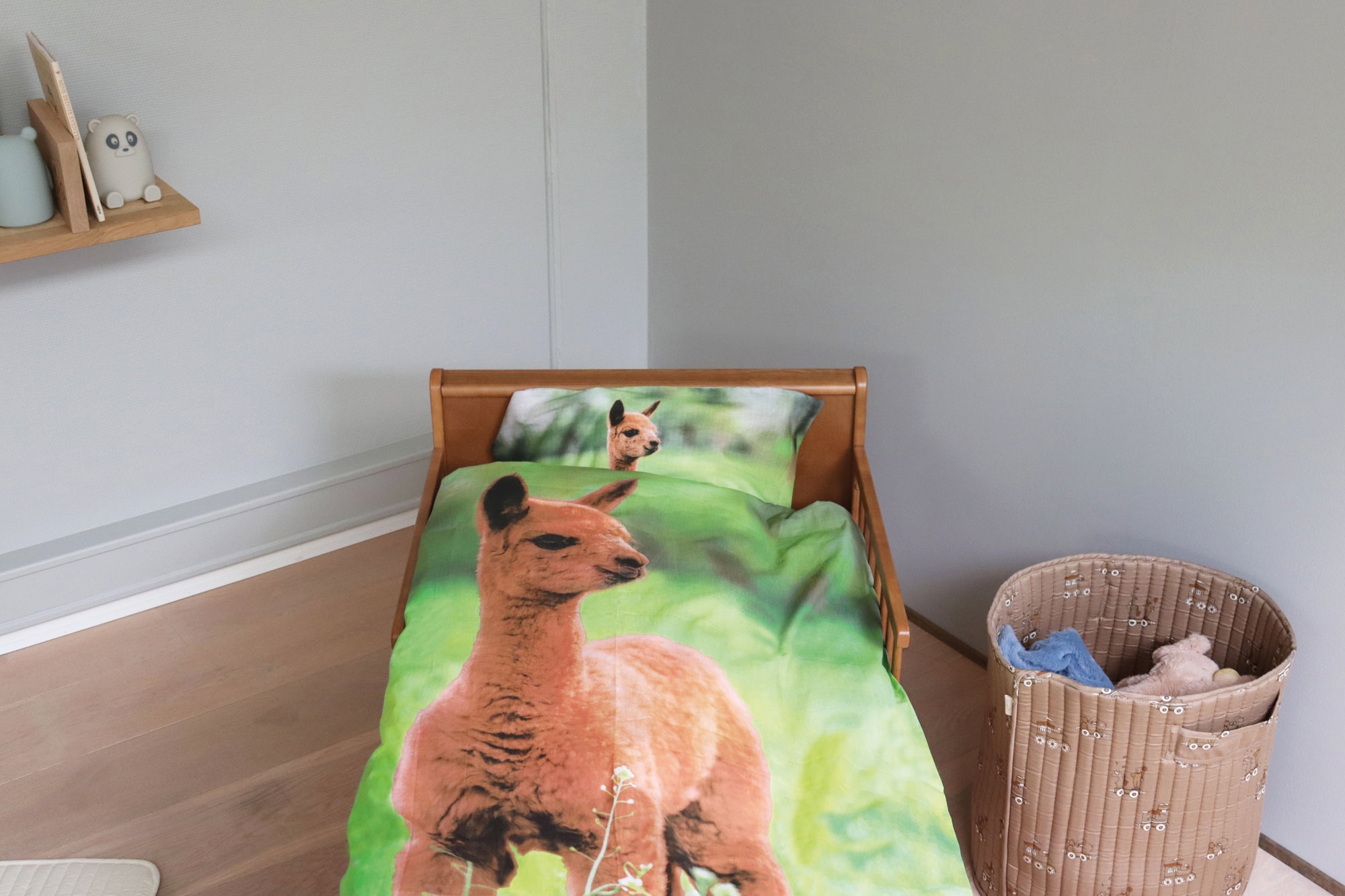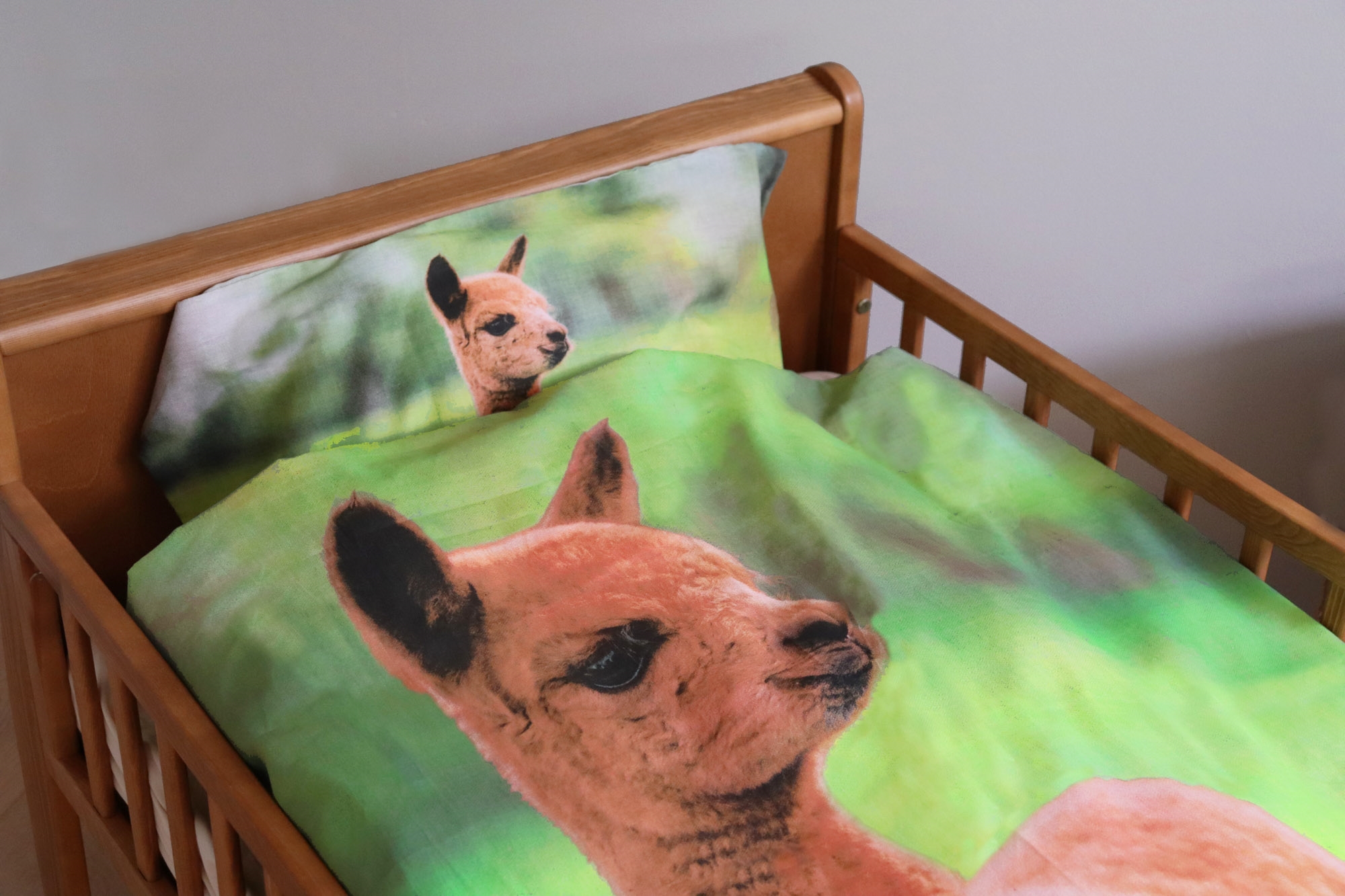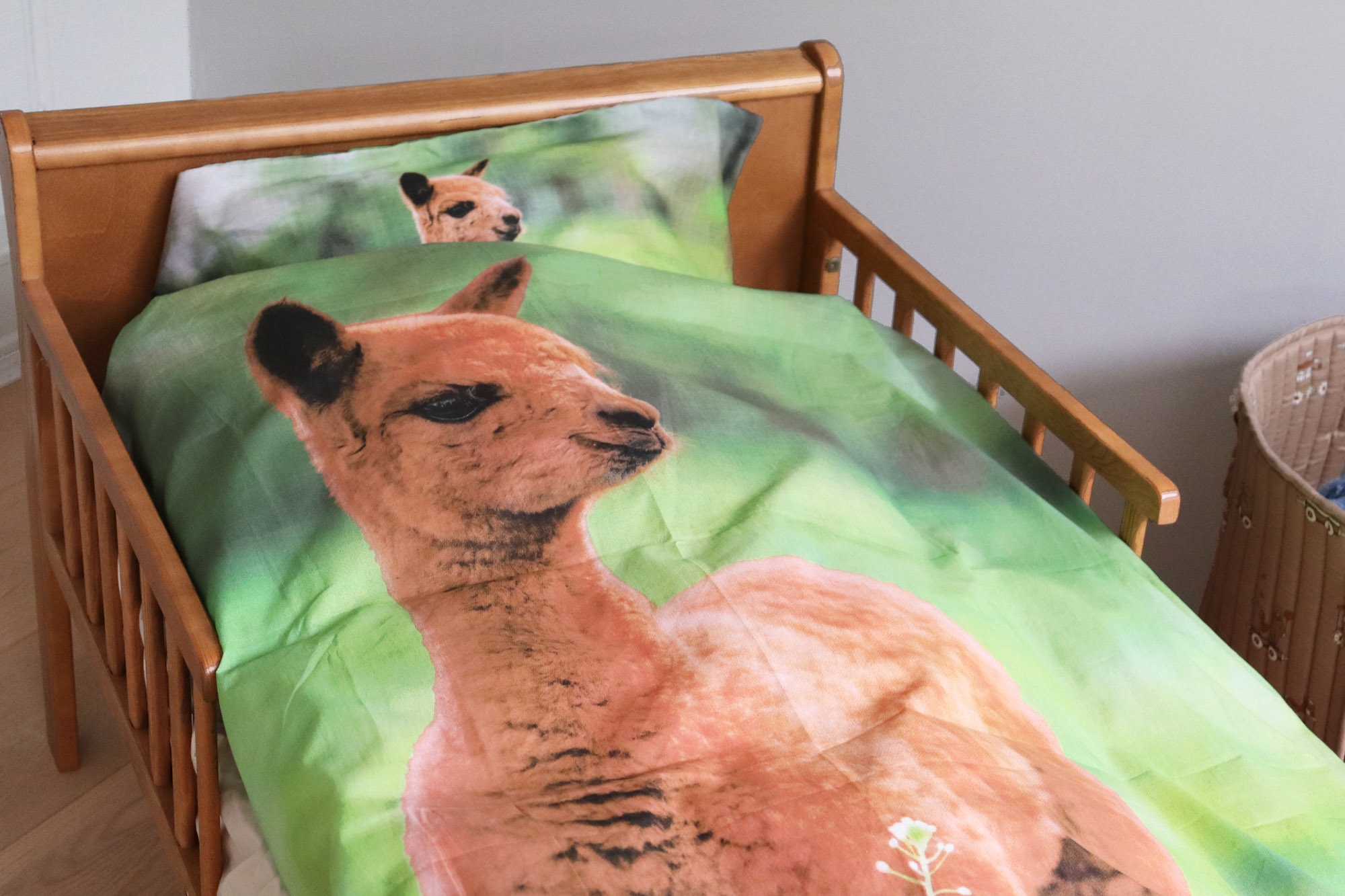 Forside » Sengetøj » Børne sengetøj » Børne sengetøj 140x200 cm Sengetøj - 100% bomuld - Alpaka sengesæt - Vendbart sengetøj i 140x200 cm Licens 169,95DKK På lager Trustpilot Antal Læg i kurv Se mere fra: Licens Artikelnummer: 7954-1 Læs vores sengetøjsguide Se vores store udvalg af lagner Se vores store udvalg af dyner 140x200 Har du spørgsmål til produktet? Åndbar bomuldBlødt og lækkertOEKO-TEX® certificeret Dynebetræk: 140x200 cm Pudebetræk: 60x63 cm Materiale: 100% blødt bomuld Farve: Grønt Motiv: Vendbart design - forside med en alpaka, bagside med all-over print af små alpakaer Lukning: Dyne med knapper og pudebetræk med overlap Vask: 60° Tørretumbling: Ja Tåler strygning: Ja Certificering: STANDARD 100 by OEKO-TEX® (20160Ko709 ANTEX). Din garanti for at produktet er fri for sundhedsskadelig kemi. Sengetøj med et meget sødt motiv af en Alpaka på forsiden, det søde væsen giver let et smil på læben. Det bløde sengesæt produceret i 100% bomuld er både åndbart og absorberende, og med god sovekomfort. Et slidstærkt bomulds børnesengesæt, som gør børneværelset lidt mere spændende. Alpaka sengetøjet kombinerer passion for dyr og sengetid. Dette sengetøj er vendbart. På forsiden er der en alpaka og på bagsiden er der print af små alpakaer. Uanset om du eller du kender en, som er en rigtig dyreelsker vil dette sengetøj være et sjovt tilbehør til ethvert soveværelse. Sengesættet er produceret i 100% blød bomuld som gør sættet slidestærkt og med høj åndbarhed. Den rene bomuldskvalitet giver et lækkert og blødt sengesæt, der er med til at fremme en sovekomfort for barnet. Bomuldssengetøj kan vaskes ved 60° i vaskemaskinen, som er også et med til at holde et et højt hygiejne niveau. Sengetøjet er yderligere fremstillet med OEKO-TEX certificeret, hvilke er din garanti for at sættet er fri for skadelig kemi. Gå på udkig efter favoritterne og meget mere, i vores store udvalg af tilbehør til børneuniverset For barnet bør sengen være et trygt sted og alle elementerne skal til sammen skabe bløde og dejlige omgivelser for barnet at finde ro i. Brug derfor gerne barnets interesser, til at skabe et trygt soverum for barnet. Hos os kan du finde et stort udvalg af tilbehør til sengen og børneværelset, lige fra lagner til dyner, puder, sengetøj og meget mere, og massere af produkter med alle børnenes favoritter på. Alt sammen elementer som kan være med til at skabe det rette sove miljø og værelse til dit barn. Her kan du finde lækre og bløde kvalitets lagner Tilbage til Børne sengetøj 140x200 cm