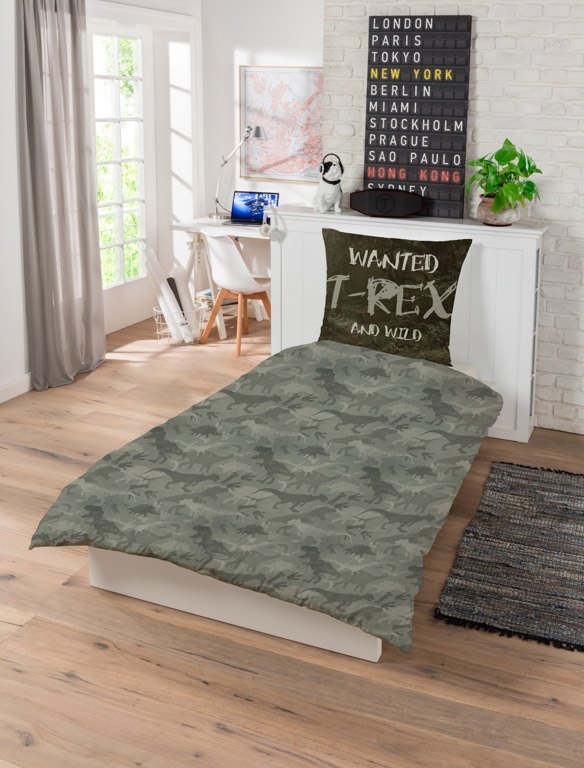 Forside » Sengetøj » Børne sengetøj » Børne sengetøj 140x200 cm Sengetøj 140x200 cm - T-rex dinosaur sengetøj - Vendbart design - Sengetøj børn i 100% bomuld Licens 199,95DKK På lager Trustpilot Antal Læg i kurv Se mere fra: Licens Artikelnummer: 9157-1 Læs vores sengetøjsguide Se vores store udvalg af lagner Se vores store udvalg af dyner 140x200 Har du spørgsmål til produktet? OEKO-TEX® certificeretBlødt og lækkertSmart design Dynebetræk: 140x200 cm Pudebetræk: 60x63 cm Materiale: 100% blød bomuld Farve: Mørke nuancer Motiv: Vendbart design - forside med t-rex, bagside med dinosaur skygge print Lukning: Dyne med knapper og pudebetræk med overlap Vask: 60° Tørretumbling: Ja Tåler strygning: Ja Certificering: STANDARD 100 by OEKO-TEX®(20160K0840). Din garanti for at produktet er fri for sundhedsskadelig kemi. Sengetøj med et sejt motiv af en farlig T-rex, og en fin grøn baggide med skygge print. Det bløde sengesæt produceret i 100% bomuld er både åndbart og absorberende, og med god sovekomfort. Et slidstærkt bomulds børnesengesæt, som gør børneværelset lidt mere spændende. Flot og frygtindgydende sengesæt, hvor den ene side har motiv af en dinosaur i skovens mørke. Vendes sengesættet om, får man en flot bagside med et all-over print af små forskellige dinoer. Ethvert dinosaur glad barn, vil elske dette sengesæt. Sengesættet er produceret i 100% blød bomuld som gør sættet slidestærkt og med høj åndbarhed. Den rene bomuldskvalitet giver et lækkert og blødt sengesæt, der er med til at fremme en sovekomfort for barnet. Bomuldssengetøj kan vaskes ved 60° i vaskemaskinen, som er også et med til at holde et et højt hygiejne niveau. Sengetøjet er yderligere fremstillet med OEKO-TEX certificeret, hvilke er din garanti for at sættet er fri for skadelig kemi. Gå på udkig efter favoritterne og meget mere, i vores store udvalg af tilbehør til børneuniverset For barnet bør sengen være et trygt sted og alle elementerne skal til sammen skabe bløde og dejlige omgivelser for barnet at finde ro i. Brug derfor gerne barnets interesser, til at skabe et trygt soverum for barnet. Hos os kan du finde et stort udvalg af tilbehør til sengen og børneværelset, lige fra lagner til dyner, puder, sengetøj og meget mere, og massere af produkter med alle børnenes favoritter på. Alt sammen elementer som kan være med til at skabe det rette sove miljø og værelse til dit barn. Her kan du finde lækre og bløde kvalitets lagner Tilbage til Børne sengetøj 140x200 cm