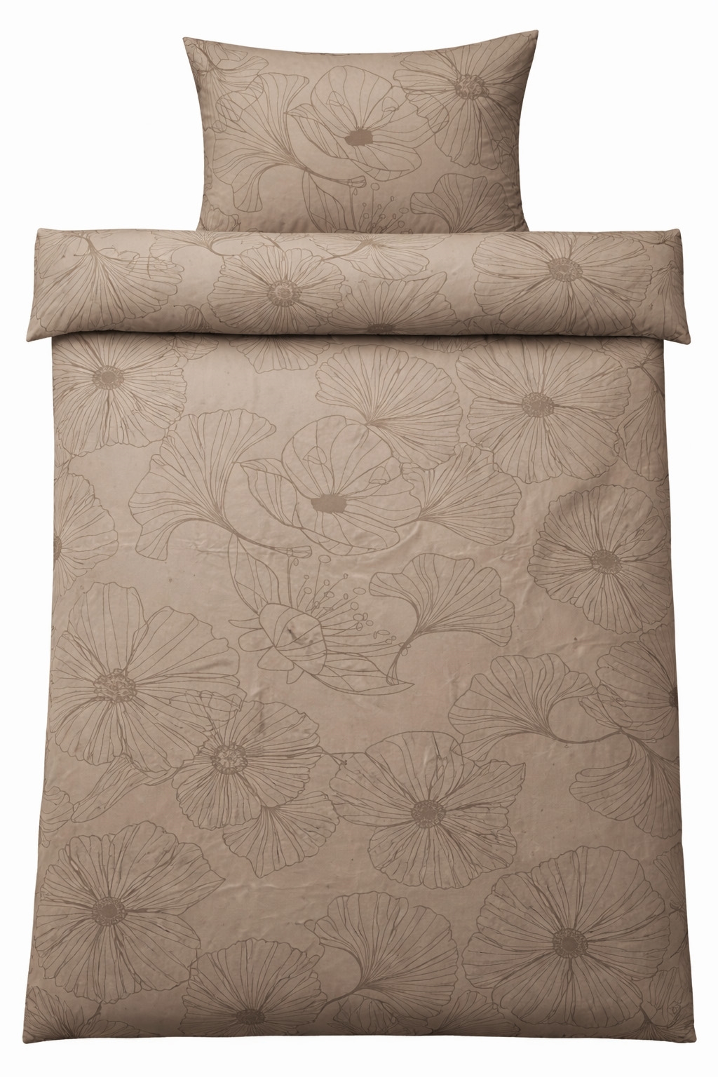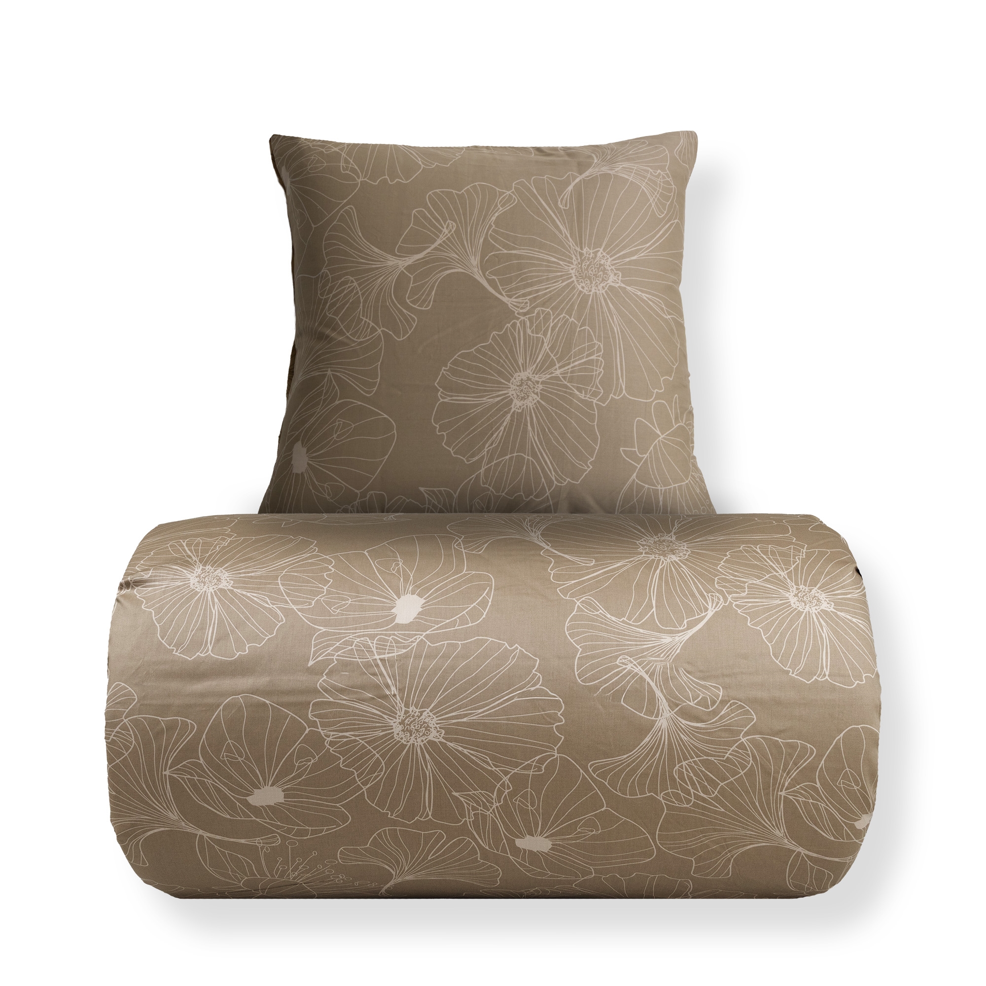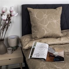 Det vendbare design giver dig to forskellige looks i ét sengesæt. Forsiden har et elegant blomsterprint i en lys sandfarve, mens bagsiden er mørk sand. Det gør sengetøjet nemt at kombinere med forskellige farver, puder og plaider og giver større fleksibilitet i indretningen.