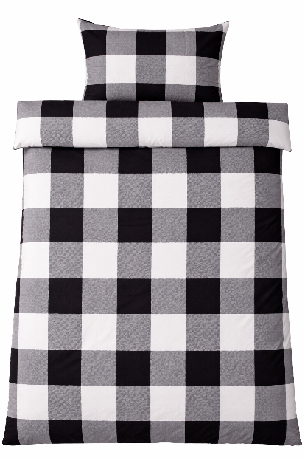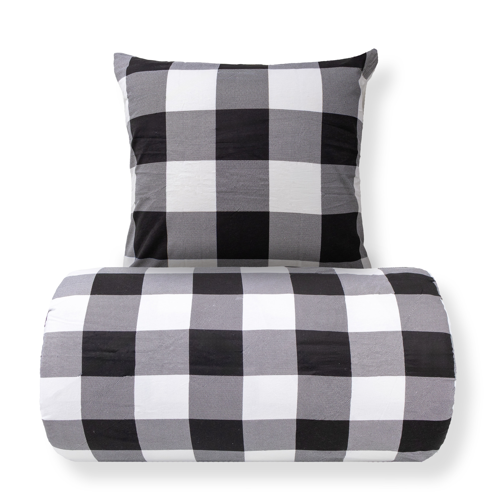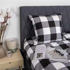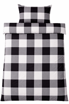 Sengetøj 140x200 cm - Bomulds flonel - Sorte og hvide tern