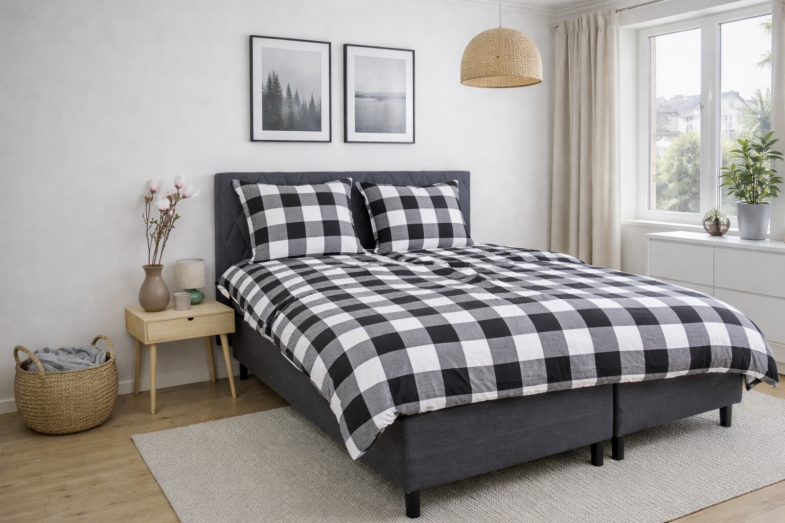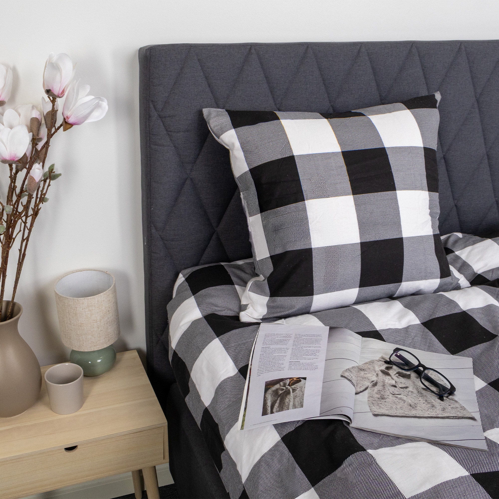 Det ternet design kombinerer flotte sorte og hvide tern, hvilket skaber et roligt og harmonisk udtryk i soveværelset. Et ternet sengetøj, der både føles lunt og ser elegant ud.