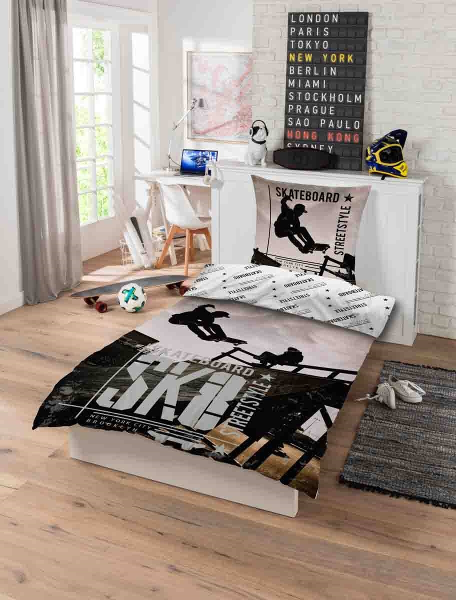Forside » Sengetøj » Børne sengetøj » Børne sengetøj 140x200 cm Sengetøj 140x200 cm - Børne Skater sengetøj med vendbart design - Streetstyle og skateboarding sengesæt i 100% bomuld Licens 199,95DKK På lager Trustpilot Antal Læg i kurv Se mere fra: Licens Artikelnummer: 99267-1 Læs vores sengetøjsguide Se vores store udvalg af lagner Se vores store udvalg af dyner 140x200 Har du spørgsmål til produktet? OEKO-TEX® certificeretBlødt og lækkertSmart design Dynebetræk: 140x200 cm Pudebetræk: 60x63 cm Materiale: 100% blød bomuld Farve: Sort, hvidt, gråt Motiv: Vendbart design - forside med skater motiv, bagside med all-over print med tekst Lukning: Dyne med knapper og pudebetræk med overlap Vask: 60° Tørretumbling: Ja Tåler strygning: Ja Certificering: STANDARD 100 by OEKO-TEX® (2018OK1545). Din garanti for at produktet er fri for sundhedsskadelig kemi. Sengetøj med et sejt motiv af en skater på rampen, i fuld fart. Et børnesengesæt til skateboarding fanen. Det bløde sengesæt produceret i 100% bomuld er både åndbart og absorberende, og med god sovekomfort. Et slidstærkt bomulds børnesengesæt, som gør børneværelset lidt mere spændende. Skateboarding - Når der skal være fart på! Cool sengesæt til en ægte skater! Betrækket har et sejt print af en skateboard rampe med to skatere. Bagsiden er hvid med teksten "skateboard" og "streetstyle". Sengesættet er produceret i 100% blød bomuld som gør sættet slidestærkt og med høj åndbarhed. Den rene bomuldskvalitet giver et lækkert og blødt sengesæt, der er med til at fremme en sovekomfort for barnet. Bomuldssengetøj kan vaskes ved 60° i vaskemaskinen, som er også et med til at holde et et højt hygiejne niveau. Sengetøjet er yderligere fremstillet med OEKO-TEX certificeret, hvilke er din garanti for at sættet er fri for skadelig kemi. Gå på udkig efter favoritterne og meget mere, i vores store udvalg af tilbehør til børneuniverset For barnet bør sengen være et trygt sted og alle elementerne skal til sammen skabe bløde og dejlige omgivelser for barnet at finde ro i. Brug derfor gerne barnets interesser, til at skabe et trygt soverum for barnet. Hos os kan du finde et stort udvalg af tilbehør til sengen og børneværelset, lige fra lagner til dyner, puder, sengetøj og meget mere, og massere af produkter med alle børnenes favoritter på. Alt sammen elementer som kan være med til at skabe det rette sove miljø og værelse til dit barn. Her kan du finde lækre og bløde kvalitets lagner Tilbage til Børne sengetøj 140x200 cm