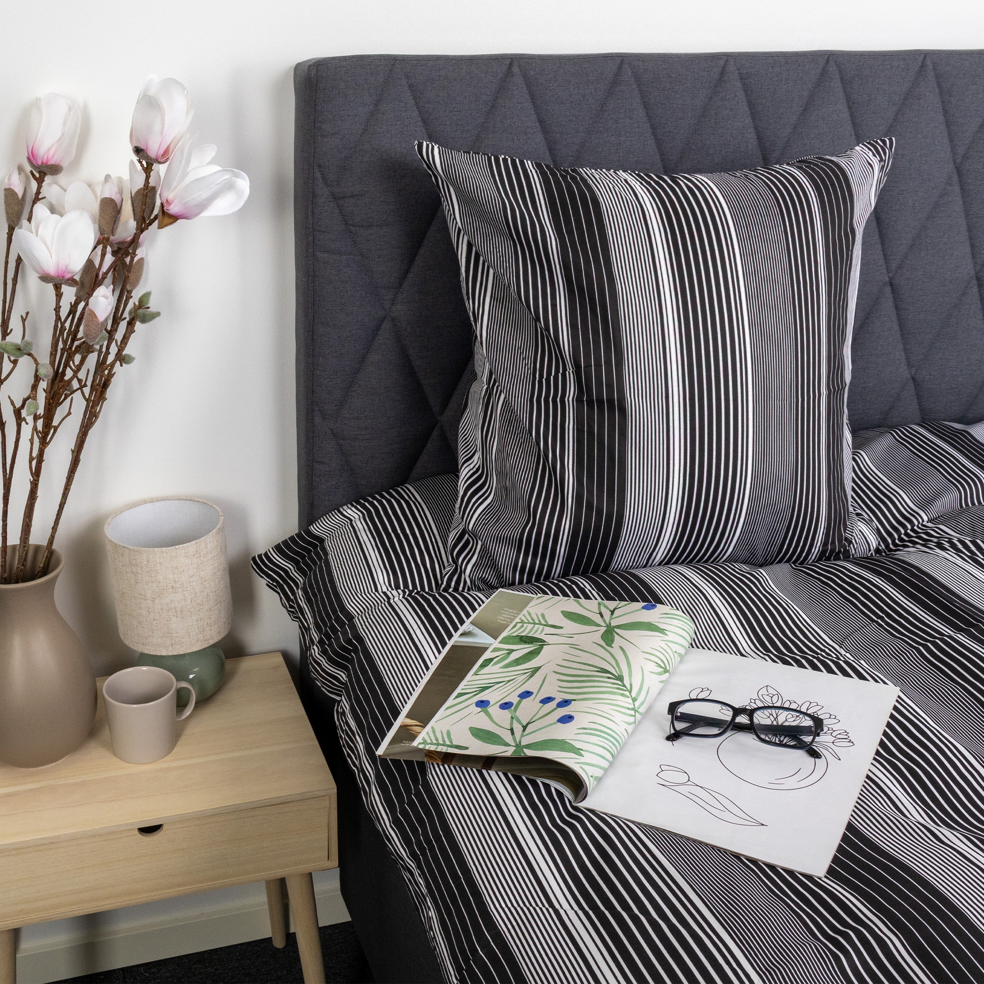 Frisk soveværelset op med et flot og praktisk sengesæt i 100% microfiber med striber. Microfiber er et populært valg for dig, der ønsker blødt, let og funktionelt sengetøj, som er nemt at vedligeholde i hverdagen.