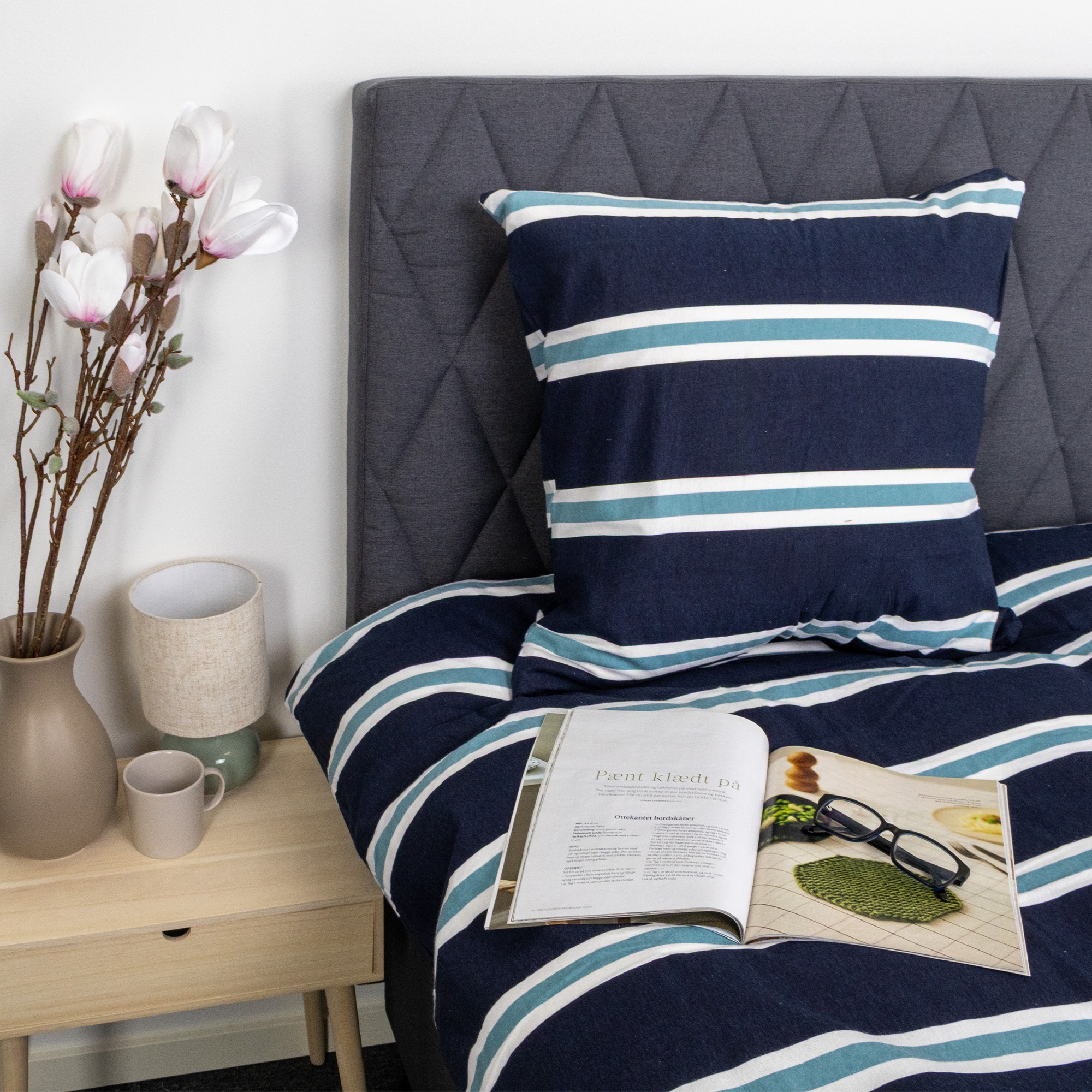 Sengetøj 140x200 cm - Bomulds flonel - Mørkeblå med striber