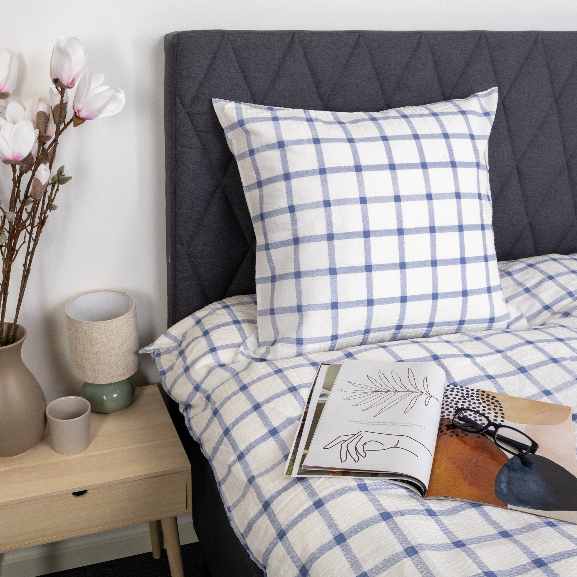 Dyne- og pudebetræk lukkes med lynlås, som gør det nemt at skifte sengetøj og holder både dyne og pude sikkert på plads natten igennem. Det ternet design giver et roligt og tidløst udtryk, der passer godt ind i både moderne og klassiske soveværelser.