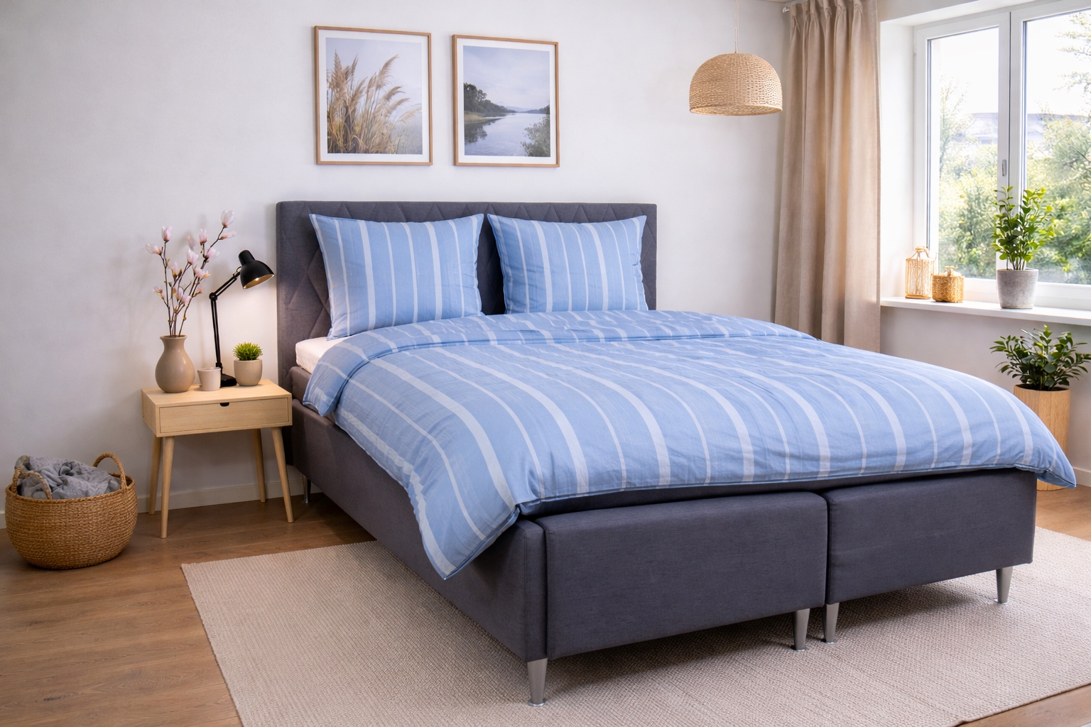 Skab et roligt og eksklusivt udtryk i soveværelset med dette stribede luksus sengesæt i 100% bomuldssatin fra By Borg. Det klassiske stribede design i blå nuancer giver et tidløst look, der passer perfekt ind i både moderne og klassiske soveværelser.