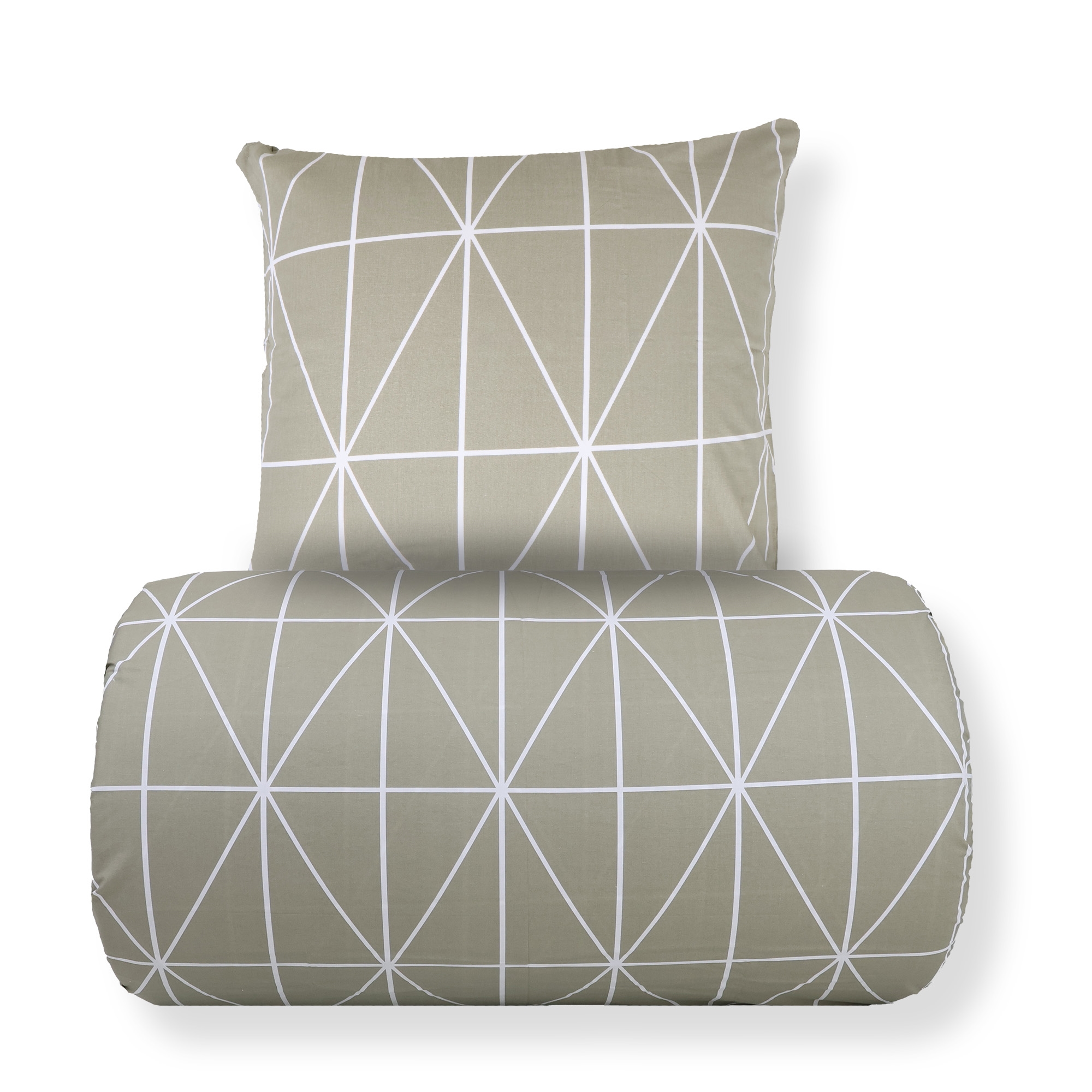 Sengetøj 140x200 cm - 100% bomuld - Grønt med hvide harlekintern