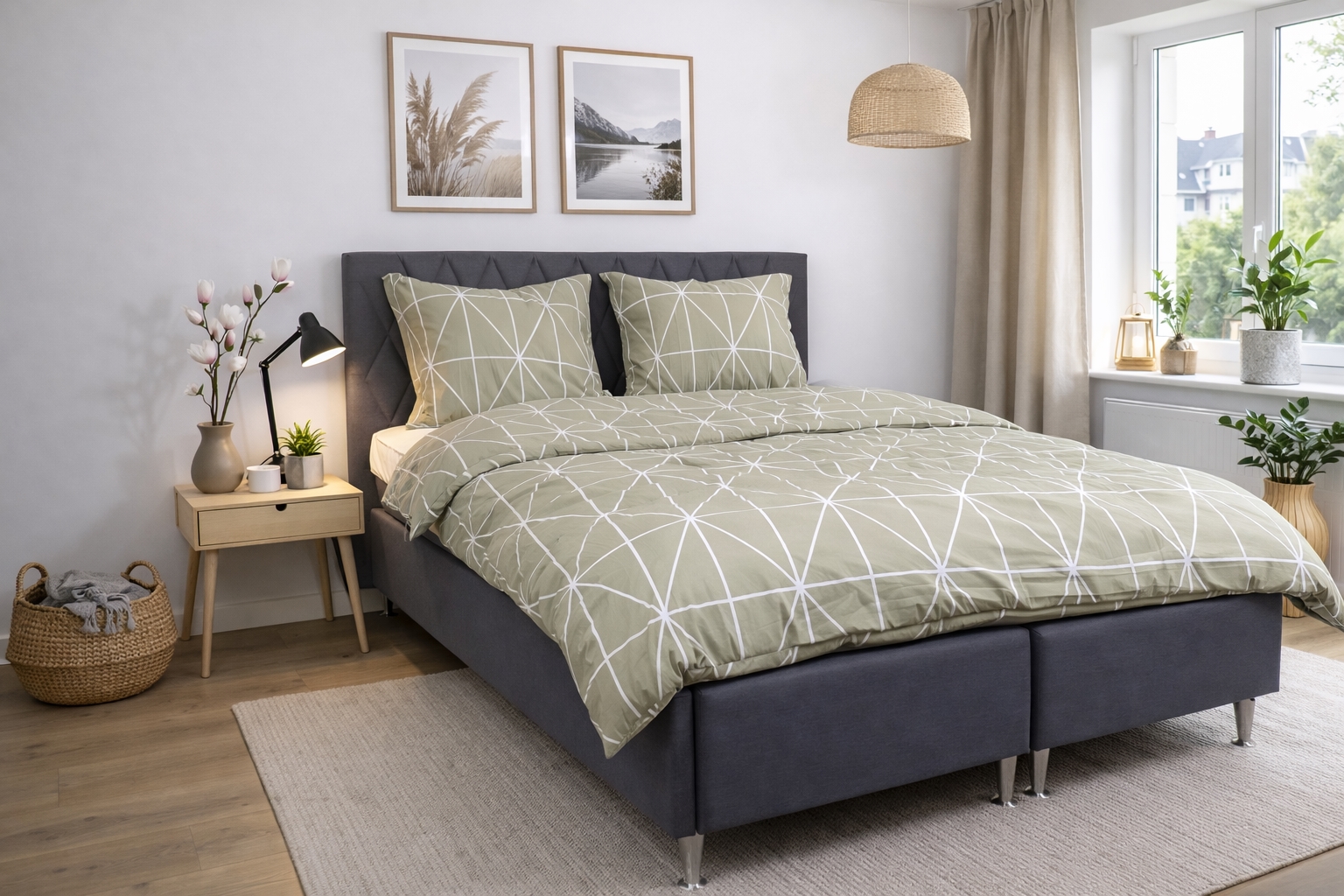 Giv soveværelset et stilrent og roligt udtryk med dette elegante sengetøj i bomuld fra Nordstrand Home. Det klassiske harlekin design i grøn skaber en harmonisk atmosfære og passer perfekt ind i både moderne og nordisk indretning.