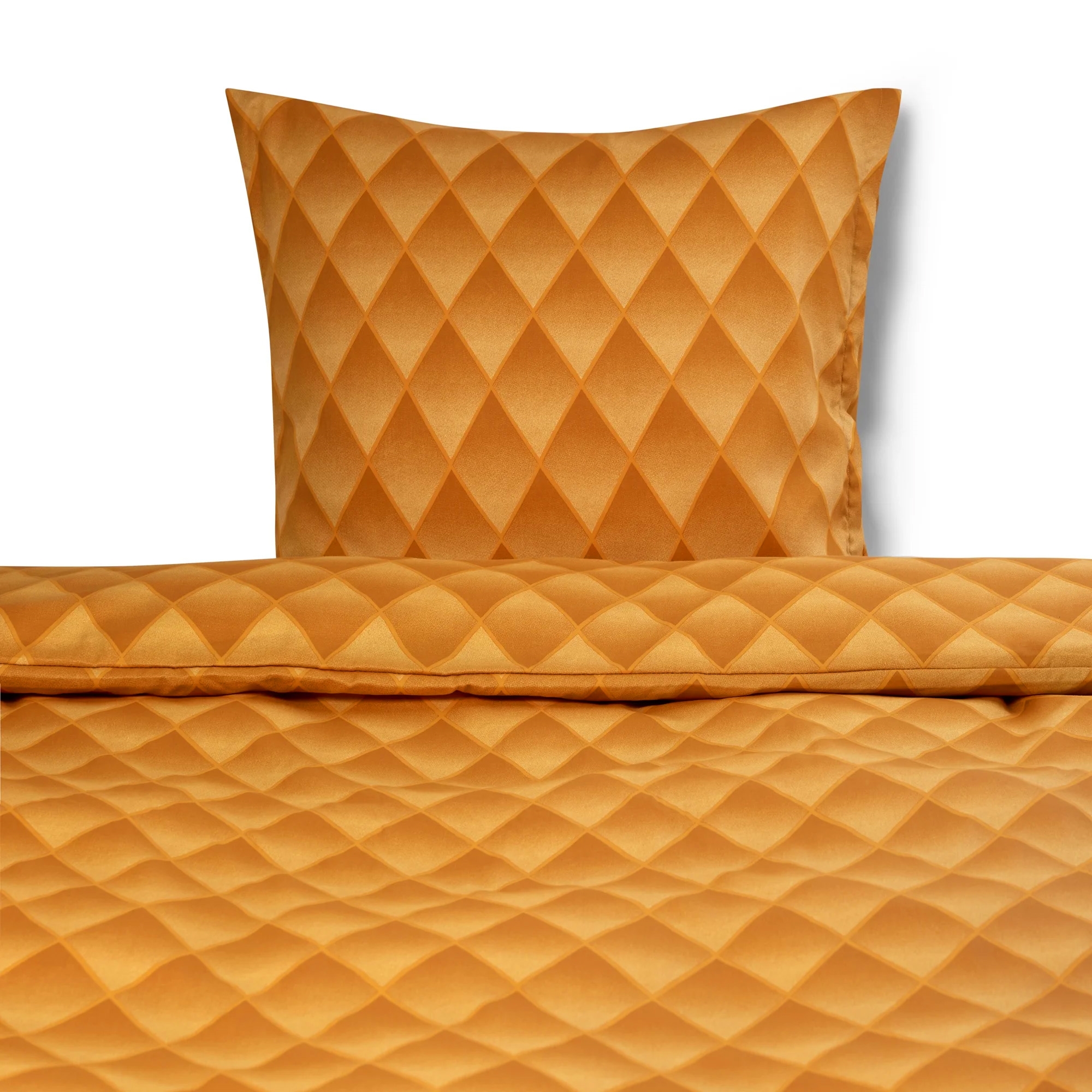 Sengetøj 140x200 cm - 100% bomuldssatin - Orange 3D harlekinmønster