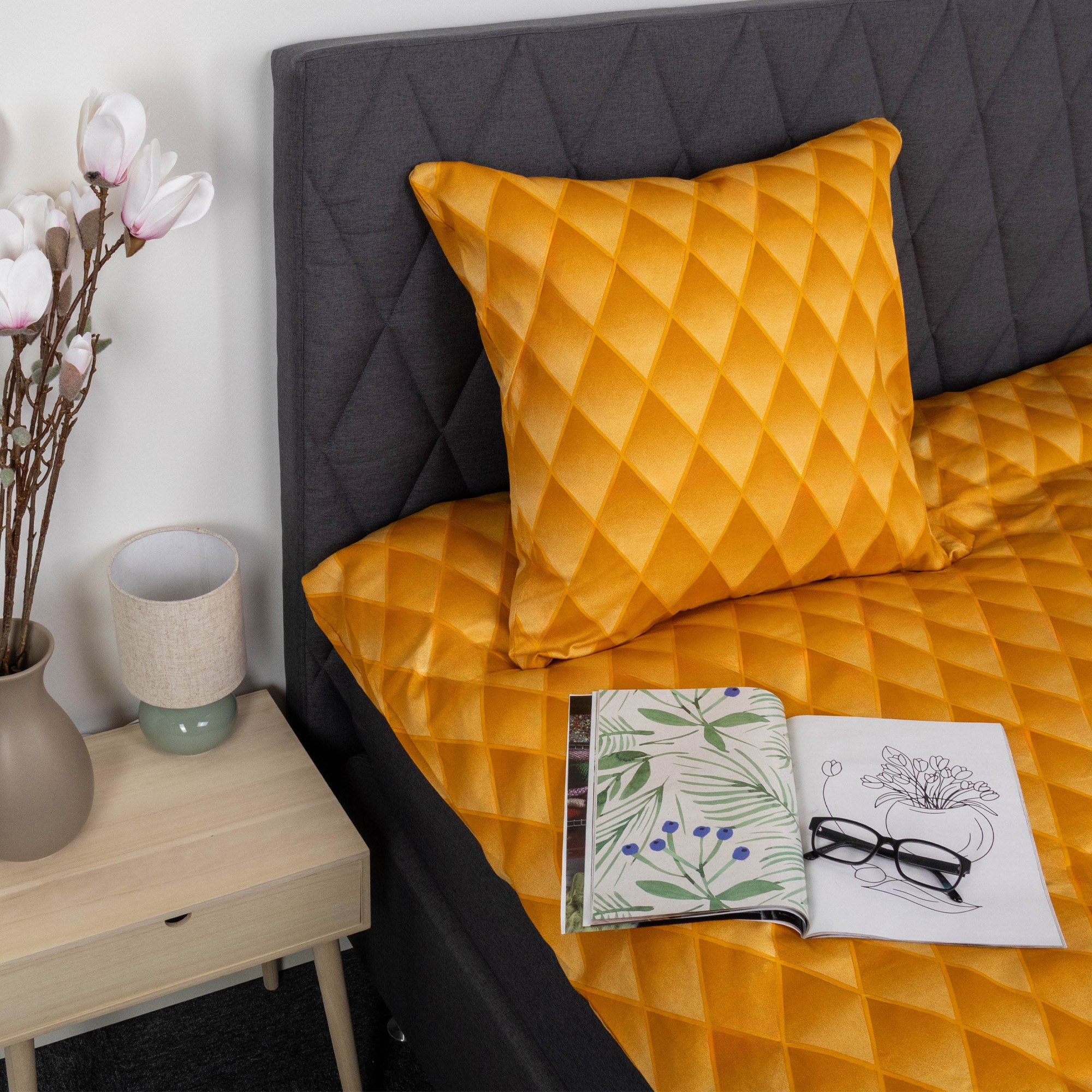 Giv soveværelset et eksklusivt og moderne udtryk med dette orange harlekin sengetøj i 100% bomuldssatin. Det graduerede diamantmønster skaber en flot 3D effekt, hvor farverne glider harmonisk over i hinanden og giver sengen dybde og karakter. Et sengesæt, der både tilføjer personlighed og elegance til din indretning.