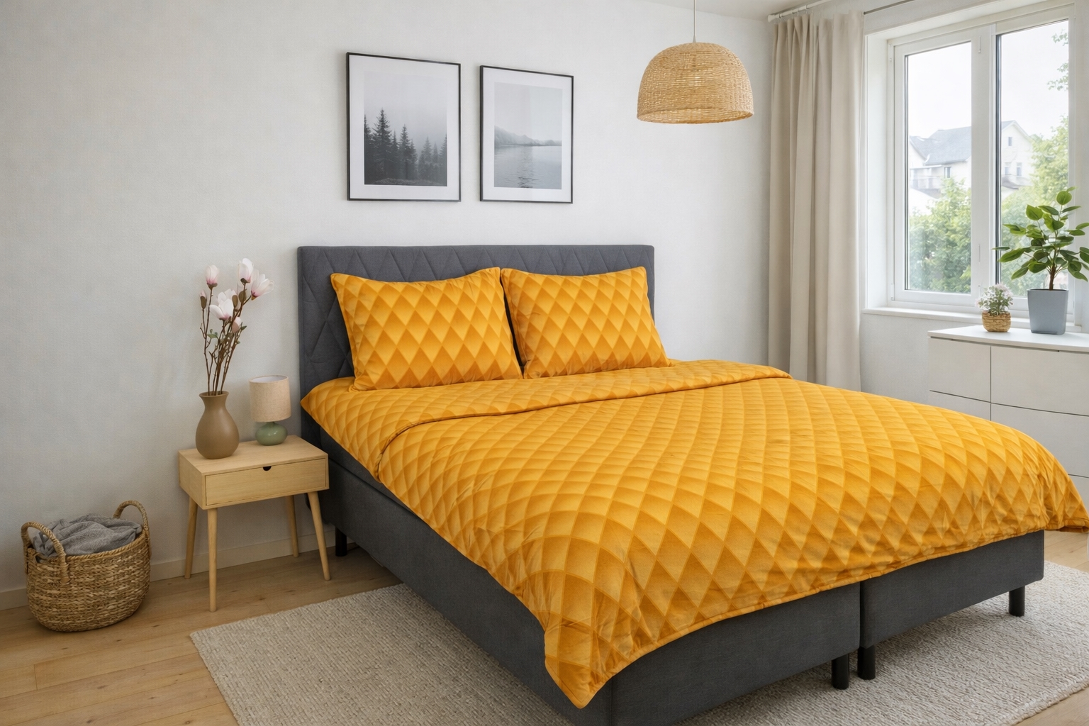Sengetøjet er fremstillet i 100% blødt bomuldssatin og vævet i en ekstra fin 230TC kvalitet. Satinvævningen er skråvævet, hvilket giver en glat, blød og let glansfuld overflade mod huden. Jo højere trådtæthed, desto finere og mere slidstærk bliver kvaliteten - og med 230TC får du et bomuldssatin sengetøj, der både føles luksuriøst og holder sig flot vask efter vask.