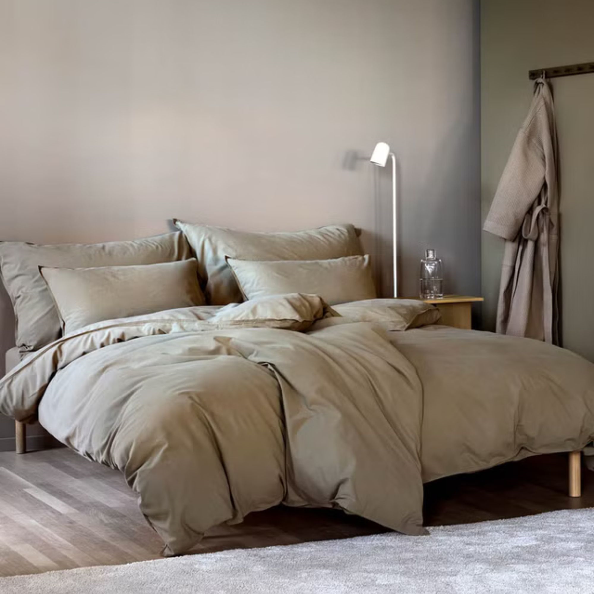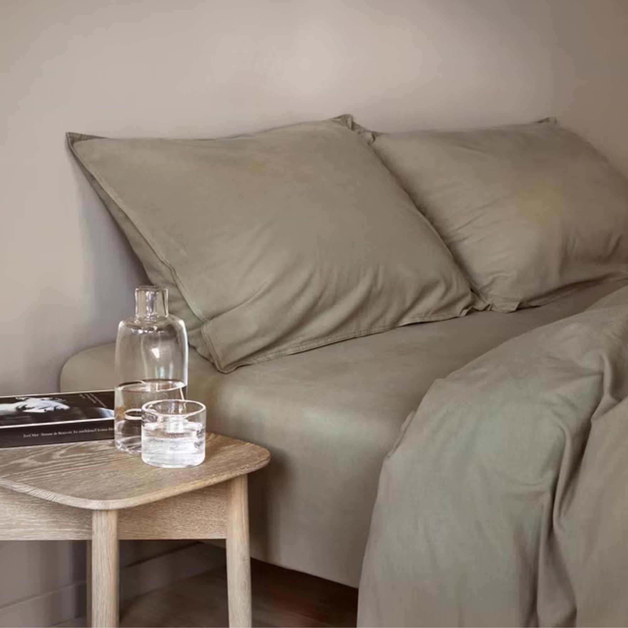 Forside » Sengetøj » Enkelt sengetøj » Enkelt sengetøj 140x200 cm Sengetøj 140x200 cm - Stonewashed - Høie of Scandinavia - Frøya Olivengrøn Høie Of Scandinavia Skarp pris: 348,00DKK På lager Trustpilot Vælg størrelse Vælg variant Antal Læg i kurv Se mere fra: Høie Of Scandinavia Artikelnummer: 8243-1 Læs vores sengetøjsguide Se vores store udvalg af lagner Har du spørgsmål til produktet? Vasket look, med et unikt udtrykFin trådtæthed som sikre en blød overfladeSvanemærket og bæredygtigt produceret Dynebetræk: 140x200 cm Pudebetræk: 1 stk. á 60x63 cm Materiale: 100% økologisk stenvasket bomuld Vævning: 144TC (Thread count = antal tråde pr. kvadrattomme) Farve: Grøn Design: Frøya Olivengrøn Brand: Høie of Scandinavia Lukning: Dynebetræk med knapper, pudebetræk med overlap Vask: 60° Tørretumbling: Ja Strygning: Ja Certificering: Svanemærket (2112 0008). For en bedre fremtid. Certificering: MADE IN GREEN by OEKO-TEX® (M1VLV2KU7). Din garanti for at produktet er fri for sundhedsskadelig kemi. Ensfarvet sengetøj i økologisk bomuld fra Høie Skab en hyggelig og rolig stemning i soveværelset med dette Frøya sengesæt i 100% økologisk bomuld. Sengetøjet er stenvasket, hvilke betyder at fibrene er blødgjort, som gør at sengesættet får det helt rigtige finish og et naturligt krøllet look. Derudover er det garnfarvet, hvilket vil sige, at trådene bliver indfarvet før de bliver vævet. Fordelen ved det er, at det giver dybere og mere holdbare farver. Økologisk bomuld dyrkes med omtanke for både mennesker og miljøet. I dyrkningen bliver der ikke anvendt skadelige pesticider, sprøjtemidler eller kunstgødning, hvilket gør bomulden mere skånsom for miljøet og for dem, der arbejder med produktionen. Samtidig betyder det færre kemikalier i det færdige produkt, hvilket kan være en fordel for personer med sensitiv hud eller allergi. Godt at vide er at Frøya serien bruger 30% mindre vand end traditionelle farvemetoder. Sengetøjet er MADE IN GREEN by OEKO-TEX® certificeret, hvilket er din garanti for, at produktet er fri for sundhedsskadelig kemi. Derudover er det Svanemærket, som sikrer, at sengetøjet lever op til strenge krav inden for miljø, sundhed og kvalitet - fra produktion til færdig produkt. Se alt vores sengetøj i stonewashed bomuld her Høie Of Scandinavia Høie of Scandinavia er et velkendt skandinavisk tekstilbrand som siden 1850 har haft en lang historie, især inden for sengetøj, dyner og puder. Høie er kendt for høj kvalitet, tidløst design og komfort - det afspejler sig i deres nordisk stil og funktionalitet. Høie kombinerer traditionelt håndværk med moderne produktion og materialer for at skabe varer, der er både behagelige at sove i og holdbare i hverdagen. Se hele udvalget af Høie her Tilbage til Enkelt sengetøj 140x200 cm