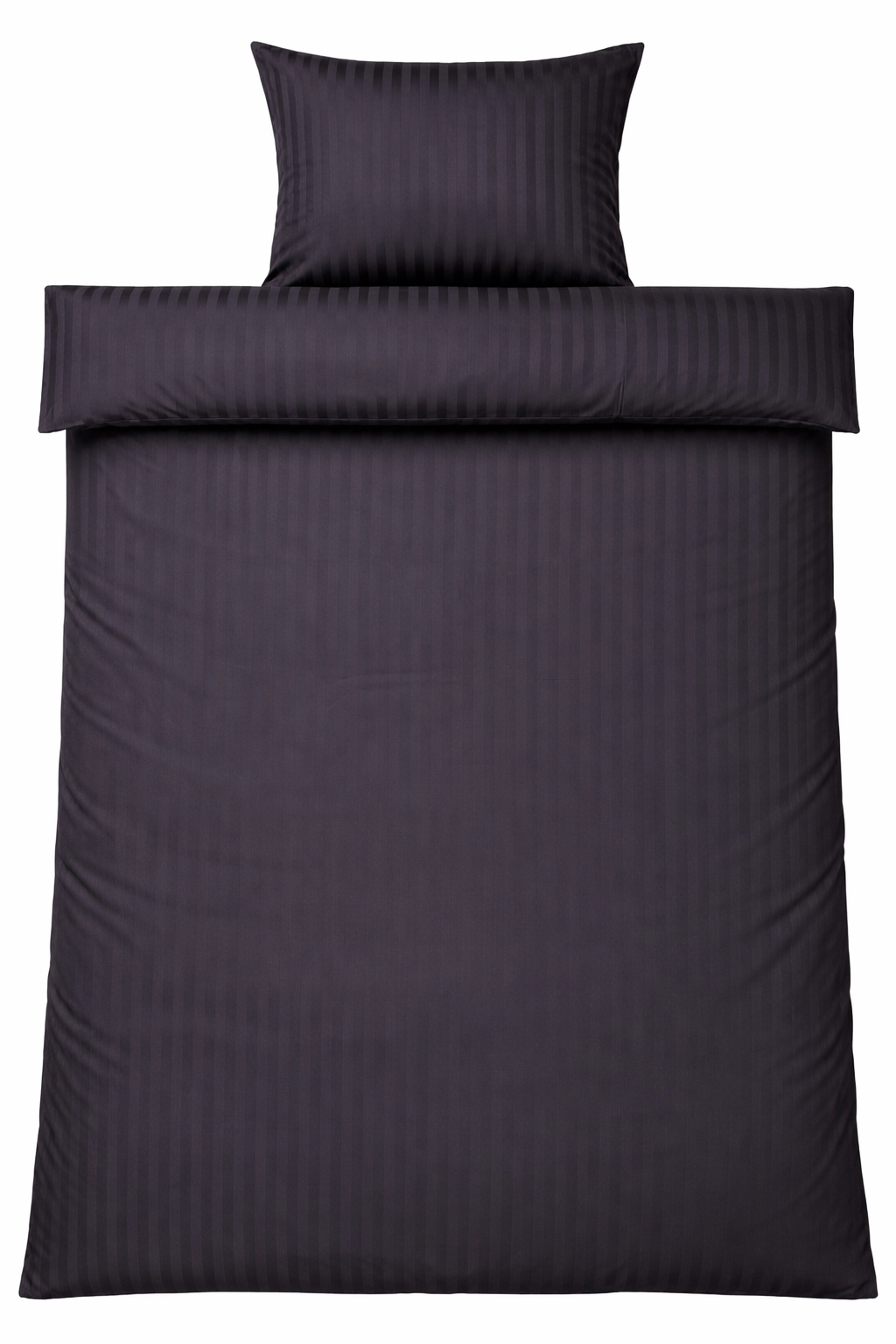 Sengetøj 140x200 cm - 100% bomuldssatin - Klassisk mørkegrå striber