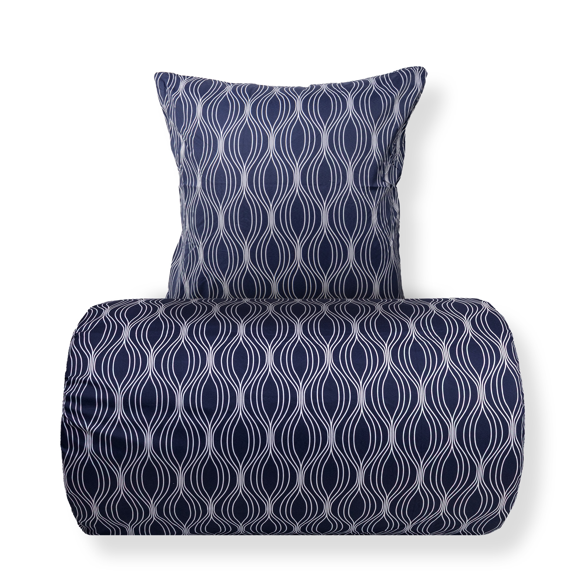 Både dynebetræk og pudebetræk lukkes med indvendig lynlås, som sikrer, at dynen og puden bliver på plads, og gør det nemt at skifte sengetøj. Det mønstret design skaber et roligt og dekorativt udtryk, der passer ind i både moderne og klassiske soveværelser.