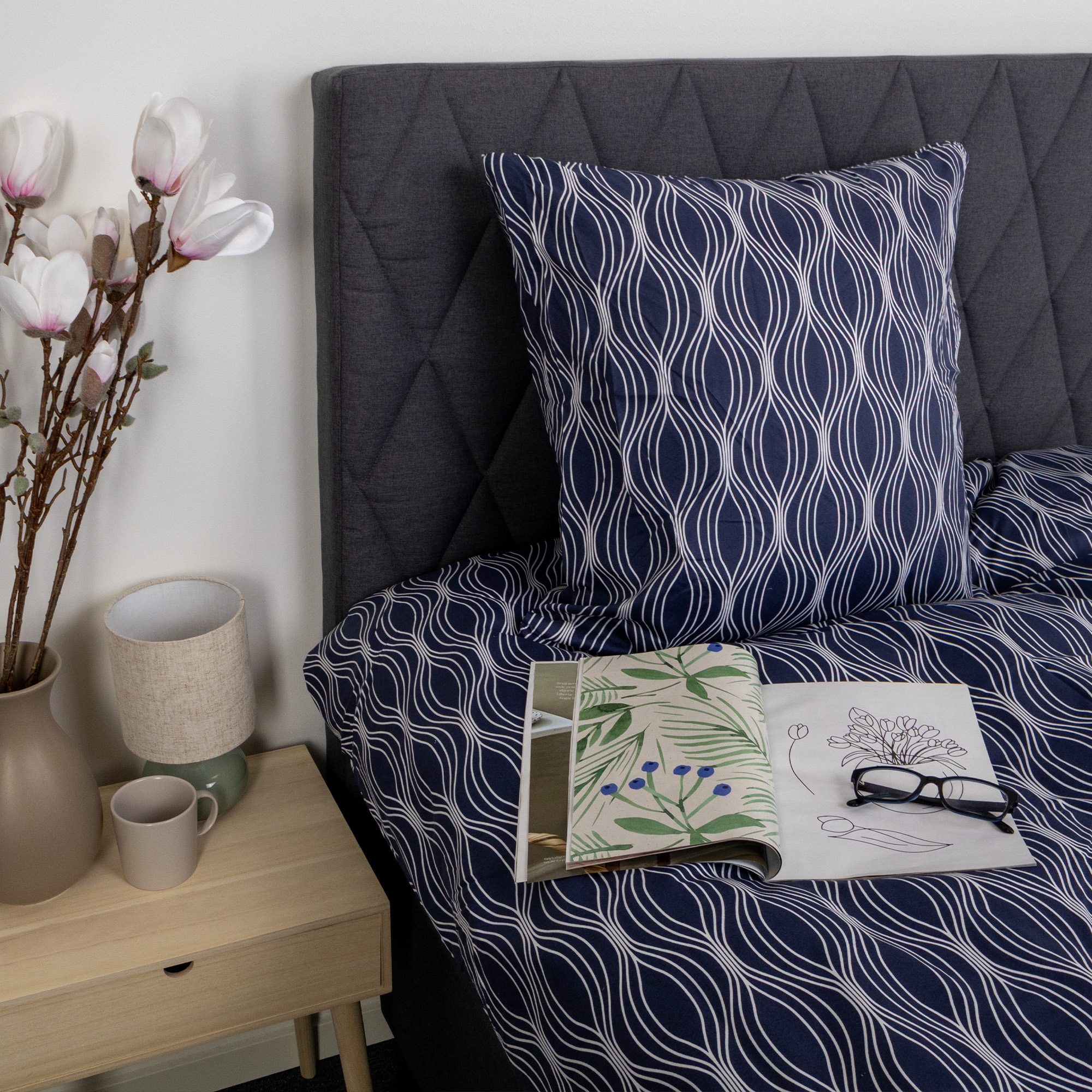 Sengetøj 140x200 cm - Microfiber - Blåt wave print