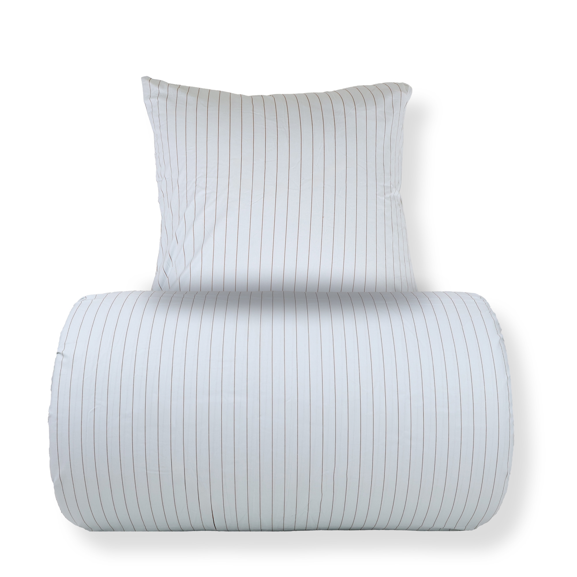 Sengetøj 140x220 cm - 100% bomuld - Blå med brune striber