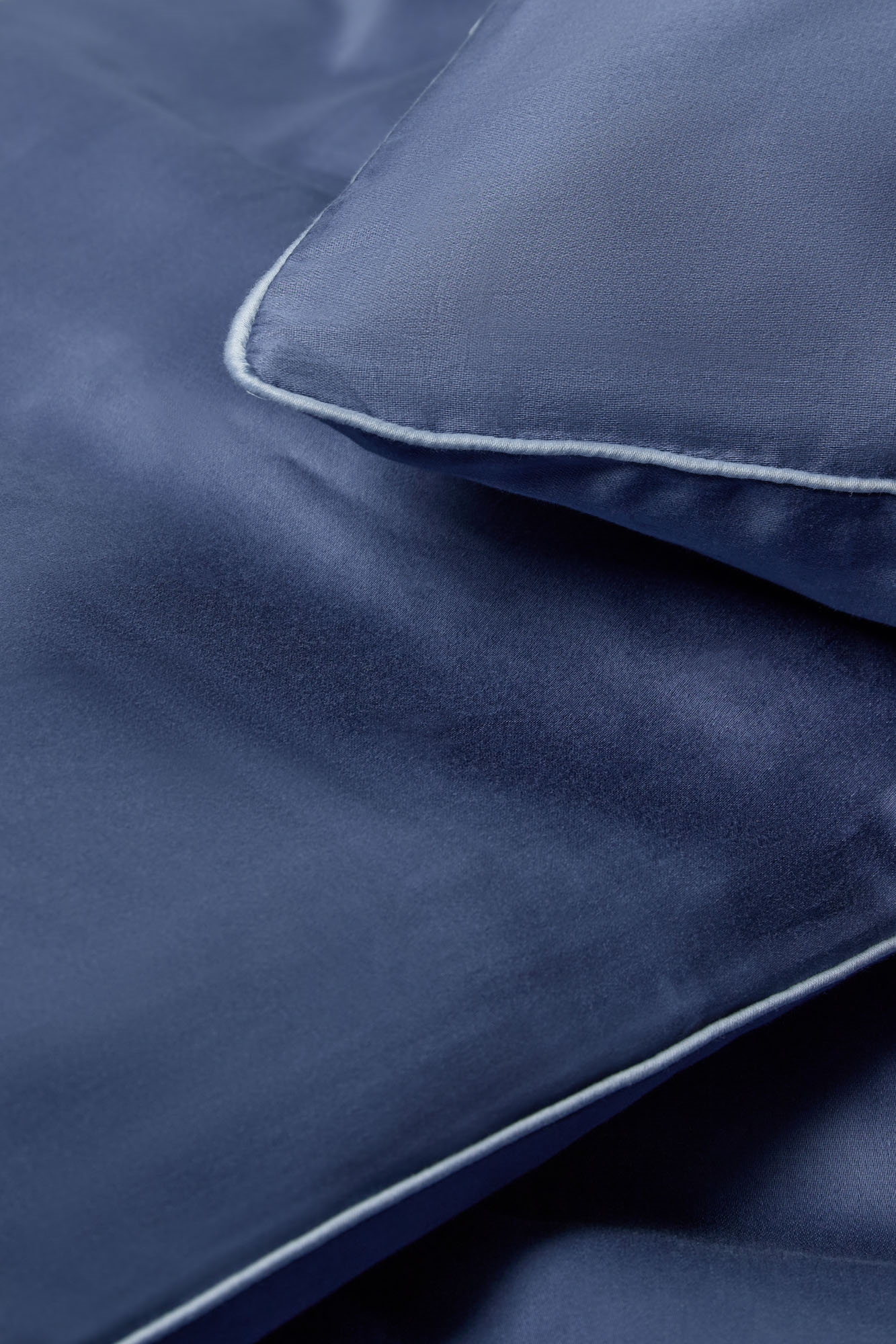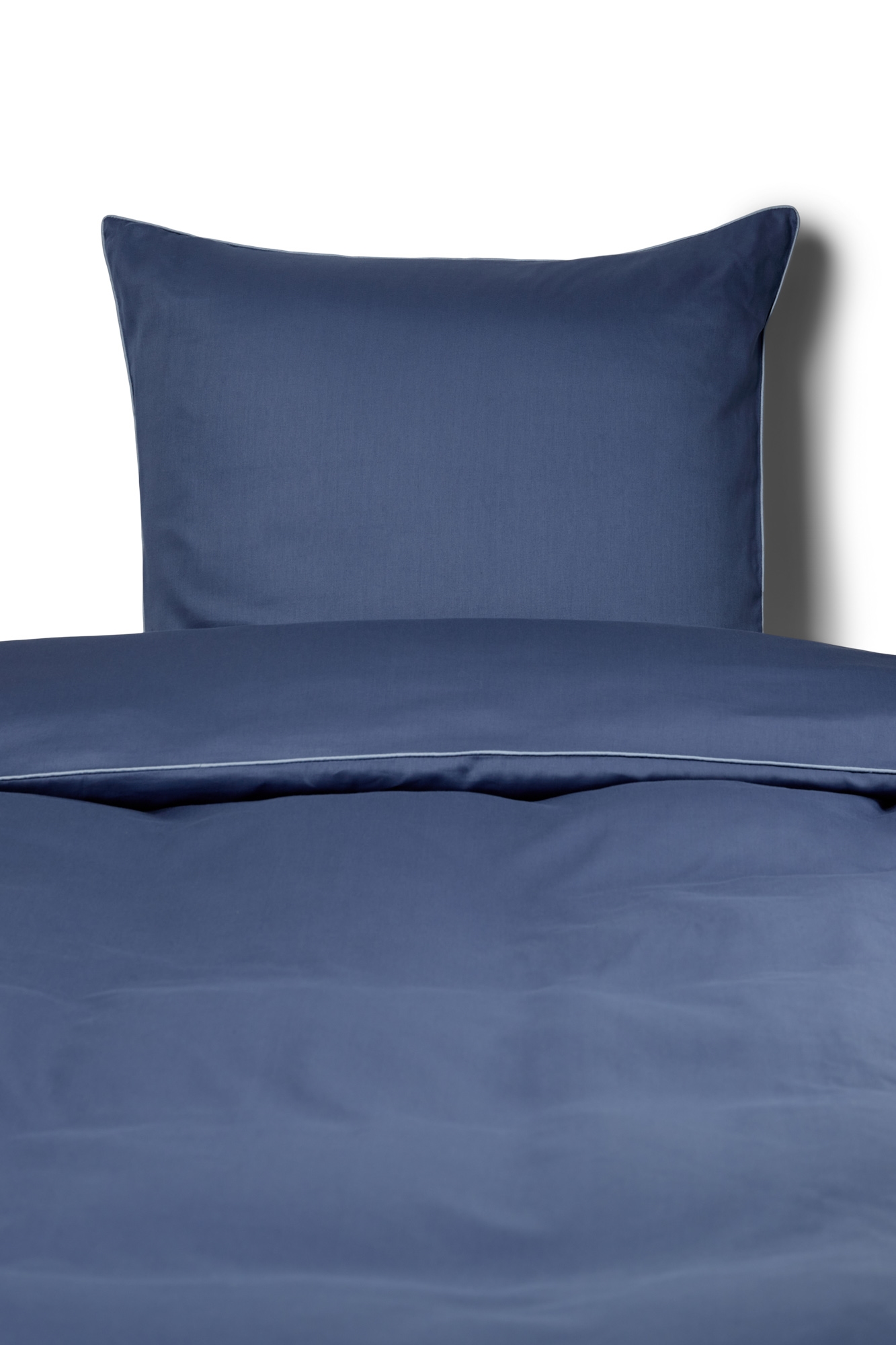 Forside » Sengetøj Sengetøj 140x220 cm - 100% bomuldssatin - Solid blåt sengetøj med pipingkant - Ekstra blødt sengesæt fra By Borg Spar82% By Borg 1.099,95195,00DKKSpar 905,- På lager Trustpilot Antal Læg i kurv Se mere fra: By Borg Artikelnummer: 806-2 Læs vores sengetøjsguide Se vores store udvalg af lagner Se vores store udvalg af dyner 140x200 Har du spørgsmål til produktet? Ekstra fin og tætvævet Utrolig blød bomuldssatinEksklusivt og stilrent udtryk Dynebetræk: 140x220 cm Pudebetræk: 1 stk. á 60x63 cm Materiale: 100% bomuldssatin Vævning: Ekstra fin 300 TC vævning (Thread count = antal tråde pr. kvadrattomme) Farve: Blå med lyseblå kant Design: Solid blå med pipingkant Brand: Excellent By Borg Lukning: Dyne- og pudebetræk med indvendig skjult lynlås Vask: 60° Tørretumbling: Ja Tåler strygning: Ja Certificering: STANDARD 100 by OEKO-TEX® (M24LKFHY1 Hohenstein HTTI). Din garanti for at produktet er fri for sundhedsskadelige stoffer. Elegant sengesæt i ekstra blød og helt tæt vævning med 300 TC. Sengetøjet er sammensat af et flot ensfarvet design med en stilfuld pipingkant og meget blød bomuldssatin. Det enkle design og den helt fine tætte vævning, giver tilsammen et eksklusivt udtryk og ikke mindst sengesættet sin ekstra bløde følelse af luksus. Sengetøjet er fremstillet i 100% bomuldssatin, med en ekstra tæt og fin vævning på 300 TC. Denne tætte TC giver sengesættet en helt unik og luksuriøs blødhed. Kendetegnet ved denne type af sengelinned er netop den ekstraordinære blødhed og følelsen af det kraftigt materiale. Den fine bomuldssatin som er vævet af ekstra fine garner og har en helt tæt vævning på hele 300 TC, hvilket indikerer at der er intet mindre end 300 fine tråde vævet sammen pr. kvadrattomme - og jo højere TC, desto tættere er vævningen. Kombinationen af den høje TC, fine bomuldssatintråde og vævemetodens art, gør at sengesættet ikke kun er utrolig lækkert at sove med, men også har en høj slidstyrke, åndbarhed og absorberingsevne. Sengesættet er 100% gennemfarvet, hvilket betyder at farven under produktionen bindes i bomuldsfibrene og giver sengetøjet en høj farveægthed. Dette gør at materialets farve og design bevares selv efter gentagende vaske. Sengesættet lukkes med skjult lynlås i både dyne og pudebetræk. Køb let pudebetræk til dine ekstra puder her Benyt samtidig muligheden for at sikre dig øget sovekomfort, ved at tilføje et nyt blødt lagen af høj kvalitet. Du finder vores store sortiment af kvalitets lagner her Excellent By Borg har med deres dansk producerede dyner og puder, samt fantastiske sengetøj fokus på komfort og søvnoptimering. De ved at kilden til en god hverdag og høj livskvalitet er forbundet med en optimal og god nattesøvn. Derfor har de gjort det nemt for dig at finde de rette sovekomponenter, der passer til netop dit behov. Produkterne fra Excellent By Borg giver dig yderst høj kvalitet samt en grundig certificering. Tilbage til Sengetøj