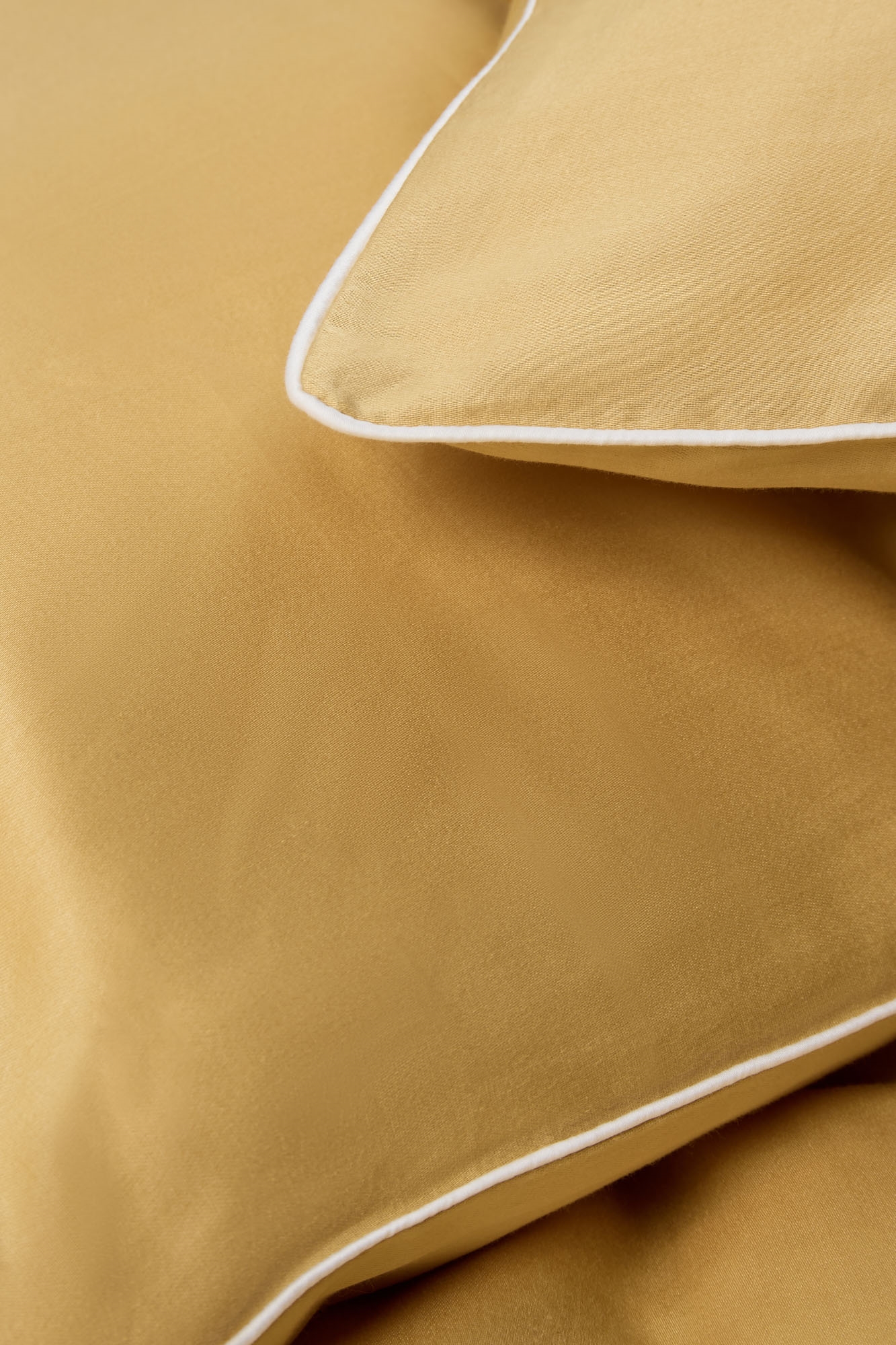 Forside » Sengetøj » Enkelt sengetøj » Ekstra langt sengetøj 140x220 cm Sengetøj 140x220 cm - 100% bomuldssatin - Solid gult sengetøj med pipingkant - Ekstra blødt sengesæt fra By Borg Spar82% By Borg 1.099,95195,00DKKSpar 905,- På lager Trustpilot Antal Læg i kurv Se mere fra: By Borg Artikelnummer: 810-2 Læs vores sengetøjsguide Se vores store udvalg af lagner Se vores store udvalg af dyner 140x200 Har du spørgsmål til produktet? Pipingbånd - eksklusivt og stilrent udtrykEkstra fin og tætvævet sengetøj i bedste kvalitet300TC - Ekstra blødt Dynebetræk: 140x220 cm Pudebetræk: 1 stk. á 60x63 cm Materiale: 100% bomuldssatin Vævning: Ekstra fin 300 TC vævning (Thread count = antal tråde pr. kvadrat tomme) Farve: Gul - Hvid pipingkant Design: Solid gul ensfarvet med pipingkant Brand: Excellent By Borg Lukning: Dyne- og pudebetræk med lynlås Vask: 60° Tørretumbling: Ja Tåler strygning: Ja Certificering: STANDARD 100 by OEKO-TEX® (M24LKFHY1 Hohenstein HTTI) Tilføj et strejf af elegance og eksklusivitet til dit soveværelse med dette sengesæt. Sengetøjet er ensfarvet med en elegant pipingkant, på både pude- og dynebetrækket. Kanten giver et flot finish og stilrent udtryk. Sengetøjet er fremstillet i 100% bomuldssatin. Kendetegnet ved sin dejlige blødhed og behagelige fornemmelse mod huden. Den fine bomuldssatin er satinvævet af fine garner og har en ekstra fin og tæt vævning på hele 300TC, hvilket indikerer at der er 300 tråde vævet sammen pr. kvadrattomme. Jo højere TC, desto tættere er vævningen, hvilket resulterer i et glattere, blødere og mere holdbart sengesæt. Derudover giver den fine vævning, et slidstærkt sengesæt, som du vil have glæde af i mange år. Sengetøjet er 100% gennemfarvet hvilket betyder at farven, under produktionen bindes i bomuldsfibrene, der herved giver en utrolig høj farve- og vaskægthed. Farven bevares selv efter gentagende vaske. Sengesættet lukkes med skjult lynlås lukning i både dyne og pudebetræk. Benyt samtidig muligheden for at sikre dig maximal sovekomfort, ved at tilføje et nyt blødt lagen af høj kvalitet. Du finder vores store sortiment af kvalitets lagner her Excellent By Borg har med deres dansk producerede dyner og puder, samt fantastiske sengetøj fokus på komfort og søvnoptimering. De ved at kilden til en god hverdag og høj livskvalitet er forbundet med en optimal og god nattesøvn. Derfor har de gjort det nemt for dig at finde de rette sovekomponenter, der passer til netop dit behov. Produkterne fra Excellent By Borg giver dig yderst høj kvalitet samt en grundig certificering. Tilbage til Ekstra langt sengetøj 140x220 cm