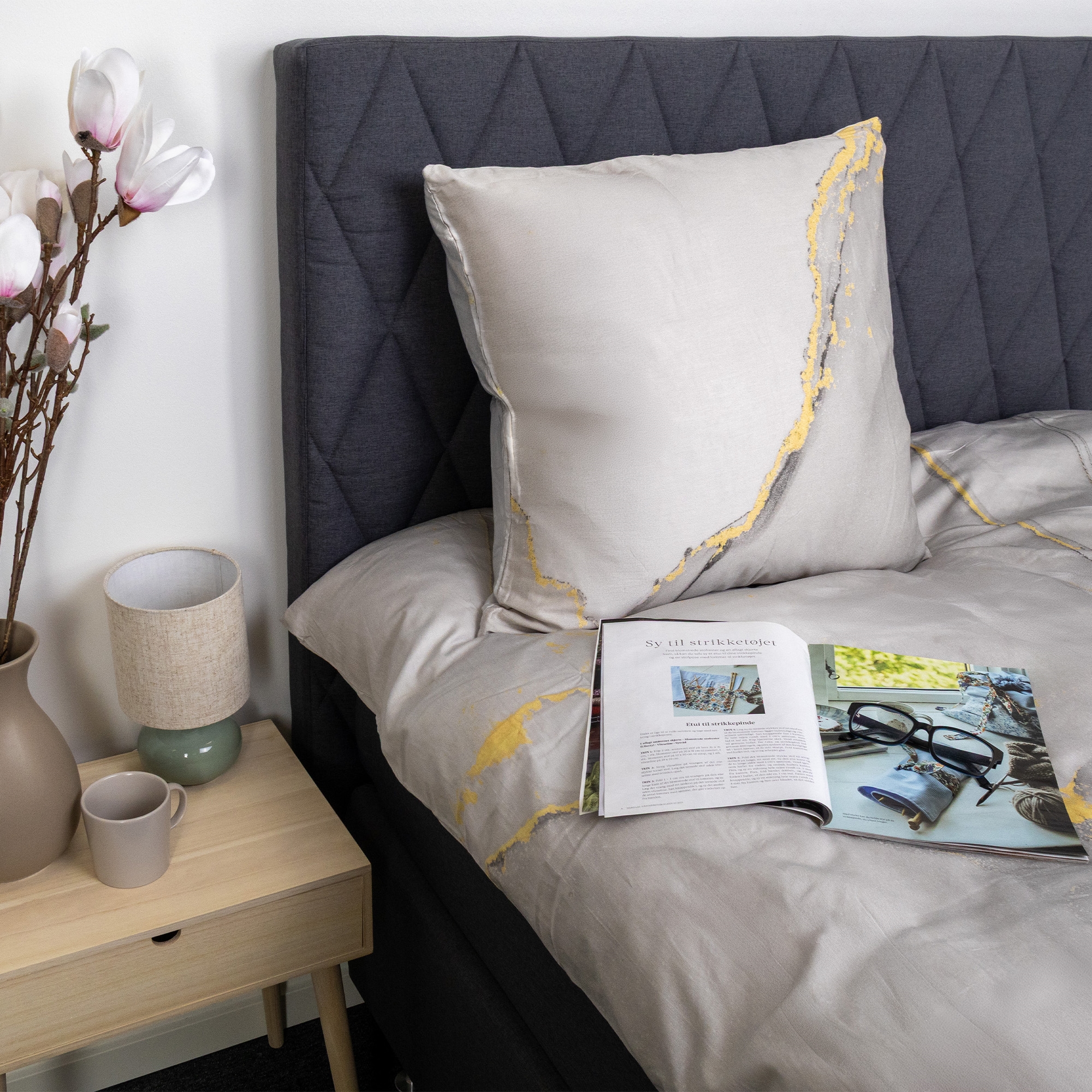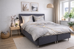 Giv soveværelset et elegant og moderne udtryk med dette bomuldssatin sengetøj i gråt marmor look. Det detaljerede marble digital print skaber en eksklusiv 3D-lignende dybde i designet, hvor de fine gyldne linjer og bløde farveovergange giver et sofistikeret og kunstnerisk look.