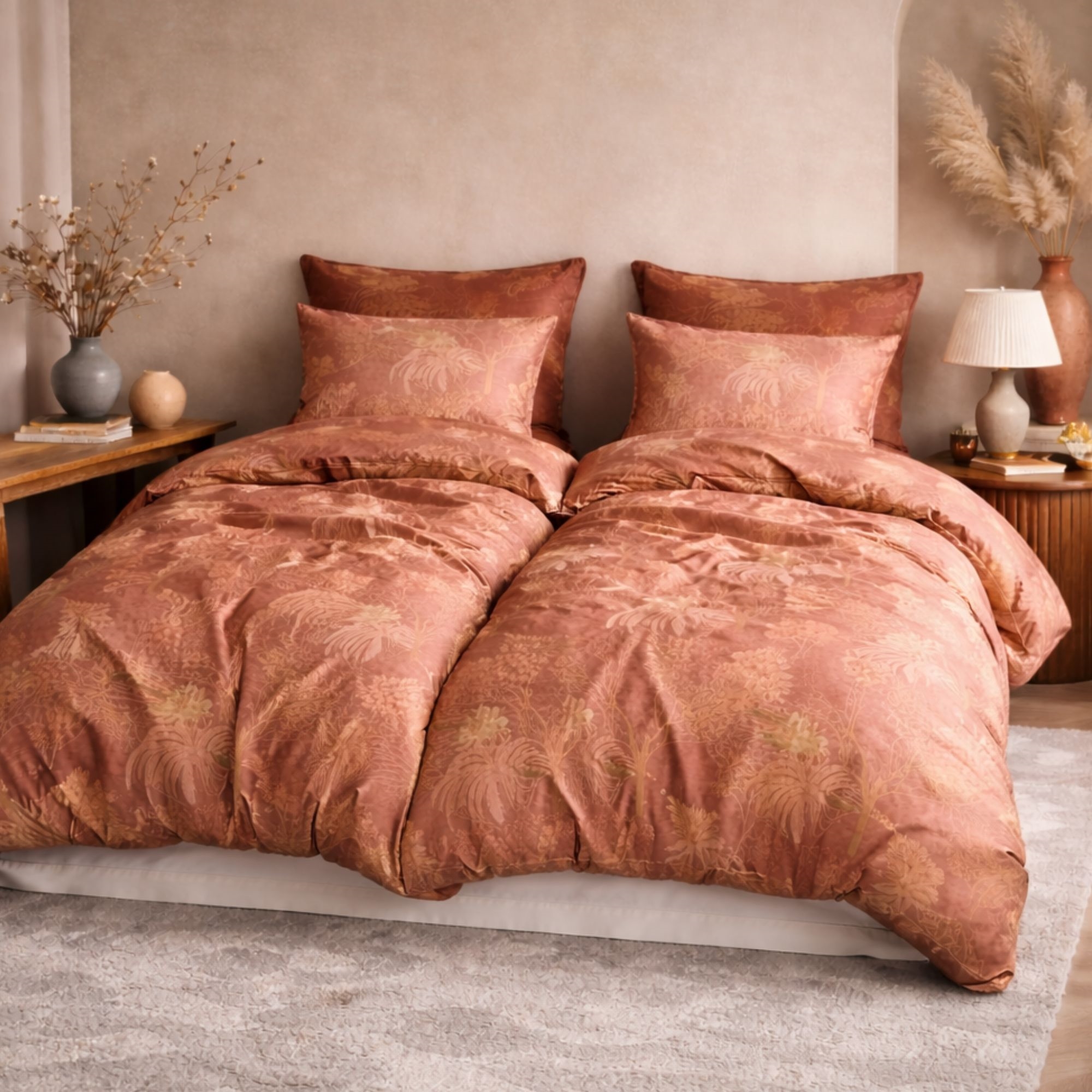 Forside » Sengetøj » Enkelt sengetøj » Ekstra langt sengetøj 140x220 cm Sengetøj 140x220 cm - 100% bomuldssatin - Høie Of Scandinavia - Margrethe Terracotta Spar46% Høie Of Scandinavia 548,00295,00DKKSpar 253,- På lager Trustpilot Vælg størrelse Vælg variant Antal Læg i kurv Se mere fra: Høie Of Scandinavia Artikelnummer: 6906-2 Læs vores sengetøjsguide Se vores store udvalg af lagner Se vores store udvalg af dyner 140x200 Har du spørgsmål til produktet? Blød kvalitet der føles behagelig mod hudenSatinvævning der giver en glat og eksklusiv overfladeLet glans i stoffet giver et eksklusivt look Dynebetræk: 140x220 cm Pudebetræk: 1 stk. á 60x63 cm Materiale: 100% bomuldssatin Vævning: Ekstra fin 220TC satinvævet (Thread count = antal tråde pr. kvadrattomme) Farve: Rødlig Design: Margrethe Terracotta Brand: Høie of Scandinavia Lukning: Dynebetræk med lynlås, pudebetræk med overlap Vask: 60° Tørretumbling: Ja Tåler strygning: Ja Certificering: EASY CARE behandlet, hvilket betyder det ikke krøller efter vask. Certificering: STANDARD 100 by OEKO-TEX® (M24LHANWS). Din garanti for at produktet er fri for sundhedsskadelig kemi. Mønstret sengetøj i bomuldssatin fra Høie Sengetøjet er fremstillet i 100% bomuldssatin med en ekstra fin 220TC satinvævning, som giver en utrolig blød og glat overflade med en diskret glans. Den høje kvalitet sikrer en behagelig og luksuriøs søvnoplevelse, hvor komfort og æstetik går hånd i hånd. En stor fordel ved bomuldssatin er holdbarheden. Stoffet er tæt vævet og stærkt, hvilket gør sengetøjet modstandsdygtigt over for slid og gentagne vaske. Samtidig bliver det faktisk ofte endnu blødere med tiden, uden at det gør noget ved formen eller kvaliteten. Det gør bomuldssatin til et godt og praktisk valg, da det kombinerer luksus med hverdagsfunktionalitet. Sengetøjet er STANDARD 100 by OEKO-TEX® certificeret, hvilket er din garanti for, at produktet er fri for sundhedsskadelig kemi. Det er også Easy Care behandlet, som sikrer mindre krøl og bedre facon efter vask. Easy Care gør dit sengetøj ekstra blødt og let at stryge. Se alt vores sengetøj i bomuldssatin her Høie Of Scandinavia Høie of Scandinavia er et velkendt skandinavisk tekstilbrand som siden 1850 har haft en lang historie, især inden for sengetøj, dyner og puder. Høie er kendt for høj kvalitet, tidløst design og komfort - det afspejler sig i deres nordisk stil og funktionalitet. Høie kombinerer traditionelt håndværk med moderne produktion og materialer for at skabe varer, der er både behagelige at sove i og holdbare i hverdagen. Se hele udvalget af Høie her Tilbage til Ekstra langt sengetøj 140x220 cm