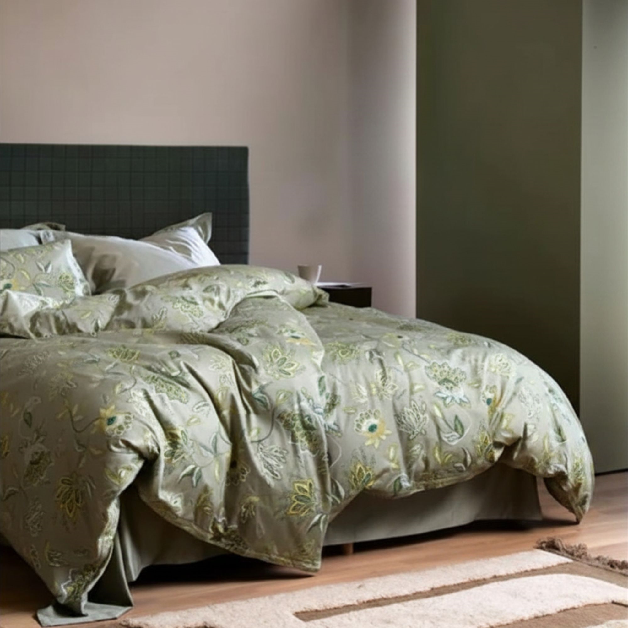 Forside » Sengetøj » Enkelt sengetøj » Ekstra langt sengetøj 140x220 cm Sengetøj 140x220 cm - 100% bomuldssatin - Høie Of Scandinavia - Mille Grøn Spar34% Høie Of Scandinavia 448,00295,00DKKSpar 153,- På lager Trustpilot Vælg størrelse Vælg variant Antal Læg i kurv Se mere fra: Høie Of Scandinavia Artikelnummer: 7437-2 Læs vores sengetøjsguide Se vores store udvalg af lagner Se vores store udvalg af dyner 140x220 Har du spørgsmål til produktet? Blød kvalitet der føles behagelig mod hudenSatinvævning der giver en glat og eksklusiv overfladeLet glans i stoffet giver et eksklusivt look Dynebetræk: 140x220 cm Pudebetræk: 1 stk. á 60x63 cm Materiale: 100% bomuldssatin Vævning: Ekstra fin 220TC satinvævet (Thread count = antal tråde pr. kvadrattomme) Farve: Grøn Design: Mille Grøn Brand: Høie of Scandinavia Lukning: Dynebetræk med lynlås, pudebetræk med overlap Vask: 60° Tørretumbling: Ja Tåler strygning: Ja Certificering: EASY CARE behandlet, hvilket betyder det ikke krøller efter vask. Certificering: STANDARD 100 by OEKO-TEX® (M2ALHAKE9). Din garanti for at produktet er fri for sundhedsskadelig kemi. Blomstret sengetøj i bomuldssatin fra Høie Sengetøjet er fremstillet i 100% bomuldssatin med en ekstra fin 220TC satinvævning, som giver en utrolig blød og glat overflade med en diskret glans. Den høje kvalitet sikrer en behagelig og luksuriøs søvnoplevelse, hvor komfort og æstetik går hånd i hånd. En stor fordel ved bomuldssatin er holdbarheden. Stoffet er tæt vævet og stærkt, hvilket gør sengetøjet modstandsdygtigt over for slid og gentagne vaske. Samtidig bliver det faktisk ofte endnu blødere med tiden, uden at det gør noget ved formen eller kvaliteten. Det gør bomuldssatin til et godt og praktisk valg, da det kombinerer luksus med hverdagsfunktionalitet. Sengetøjet er STANDARD 100 by OEKO-TEX® certificeret, hvilket er din garanti for, at produktet er fri for sundhedsskadelig kemi. Det er også Easy Care behandlet, som sikrer mindre krøl og bedre facon efter vask. Easy Care gør dit sengetøj ekstra blødt og let at stryge. Se alt vores sengetøj i bomuldssatin her Høie Of Scandinavia Høie of Scandinavia er et velkendt skandinavisk tekstilbrand som siden 1850 har haft en lang historie, især inden for sengetøj, dyner og puder. Høie er kendt for høj kvalitet, tidløst design og komfort - det afspejler sig i deres nordisk stil og funktionalitet. Høie kombinerer traditionelt håndværk med moderne produktion og materialer for at skabe varer, der er både behagelige at sove i og holdbare i hverdagen. Se hele udvalget af Høie her Tilbage til Ekstra langt sengetøj 140x220 cm