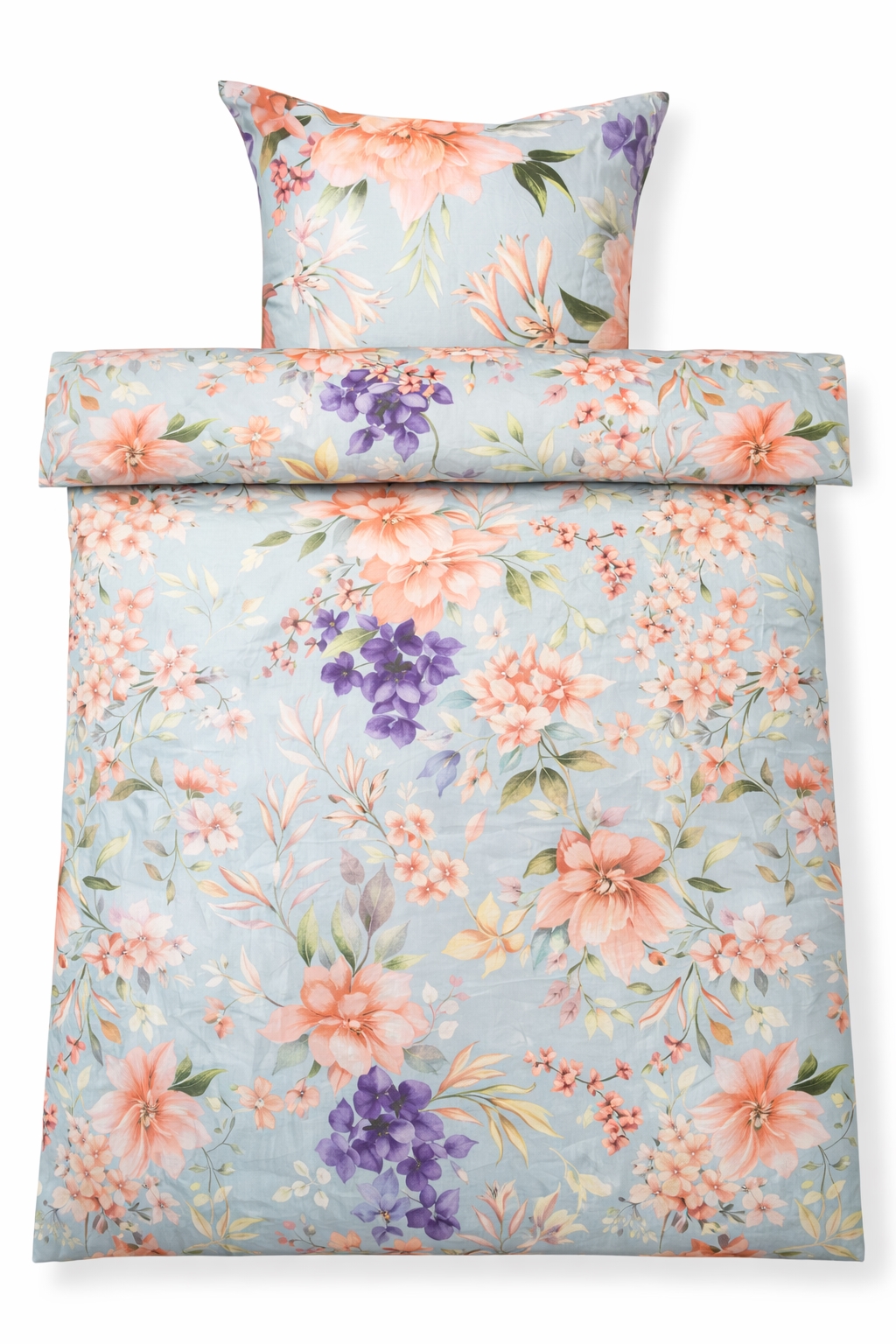 Sengetøj 140x220 cm - bomuldssatin - Summer Bloom - Lyseblåt blomster print
