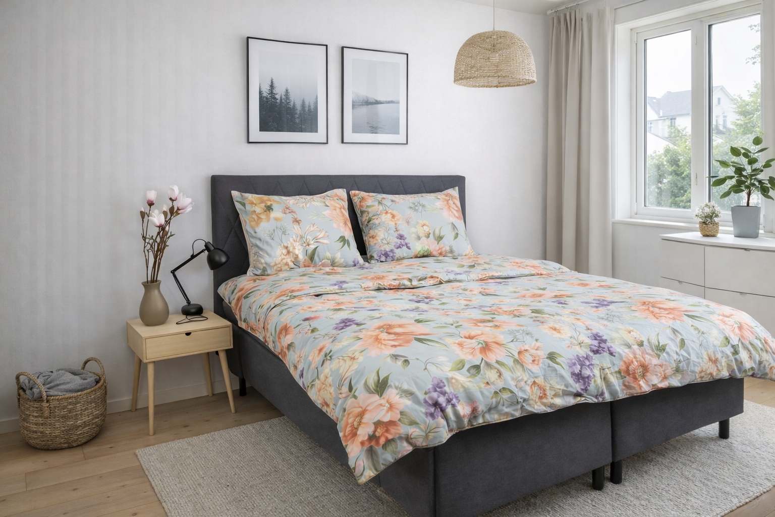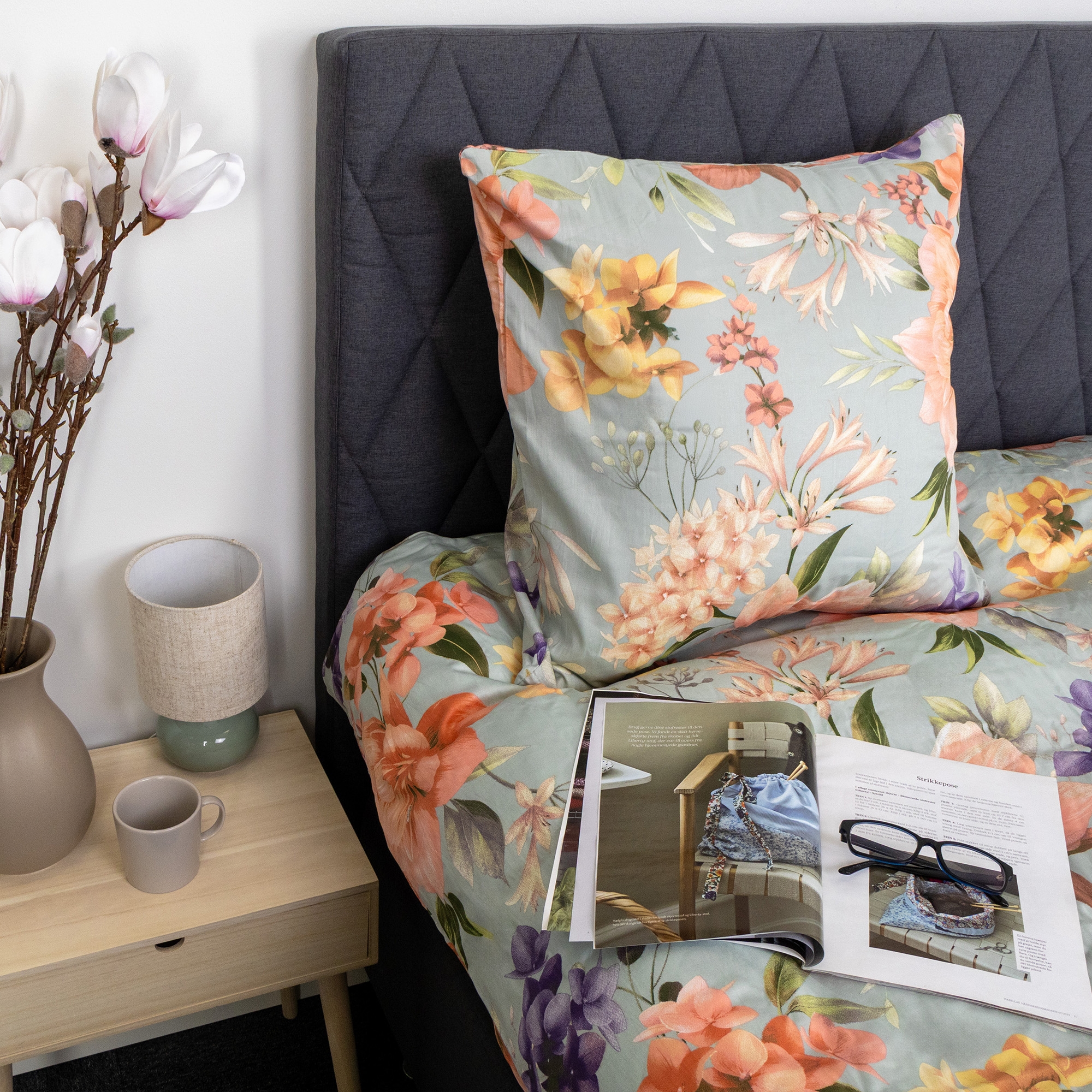 Sengetøj i 100% bomuldssatin - blomster print