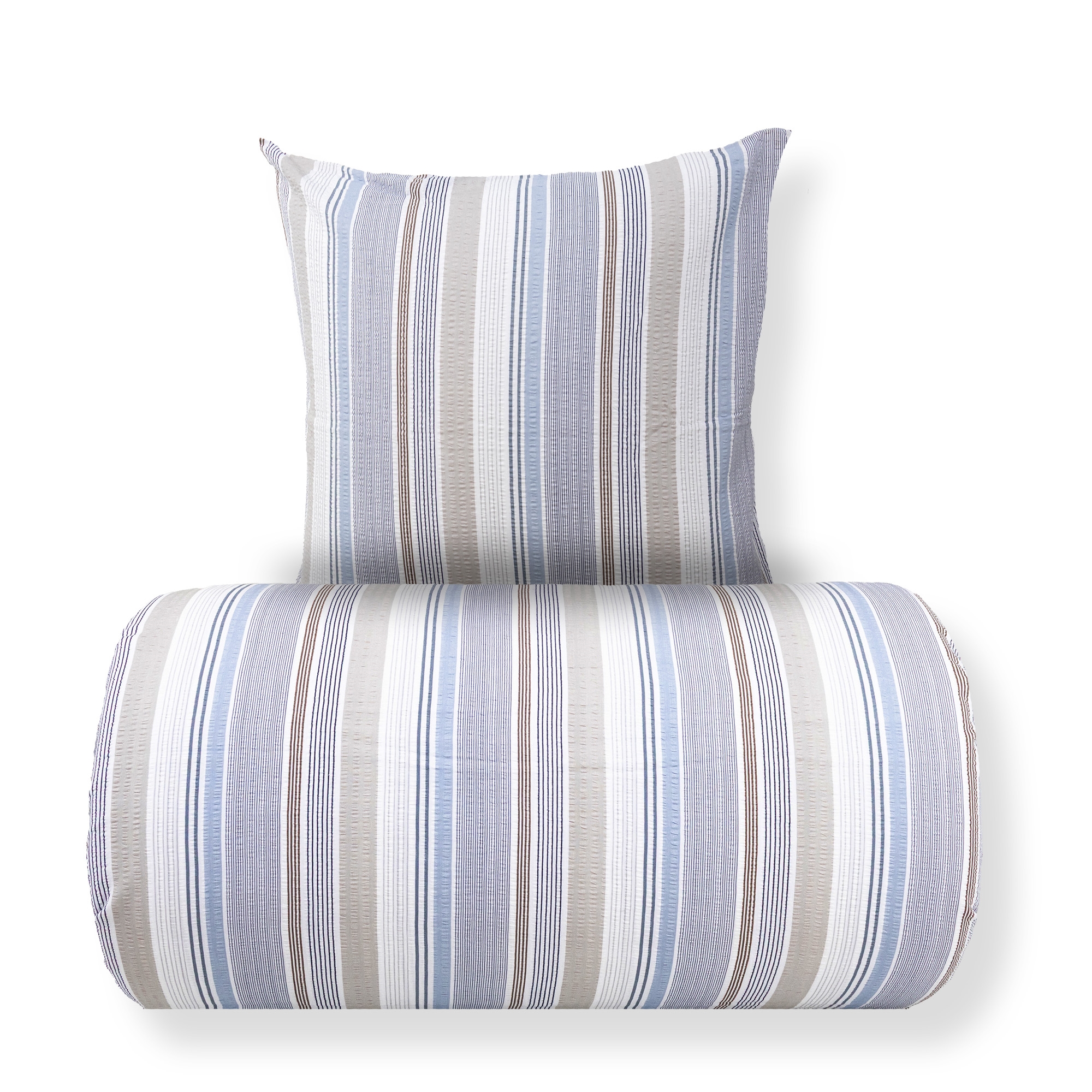 Sengetøj 140x220 cm - Bæk og Bølge - 100% bomulds krep - Blå striber