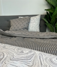 Forside » Sengetøj » Enkelt sengetøj » Enkelt sengetøj 150x210 cm (Svensk mål) Sengetøj 150x210 cm - Vendbart design i 100% Bomuldssatin - Fan grey - Sengesæt fra By Night Spar57% Borg LivingBy Night 699,95299,95DKKSpar 400,- På lager Trustpilot Antal Læg i kurv Se mere fra: Borg Living Artikelnummer: 492-3 Læs vores sengetøjsguide Se vores store udvalg af lagner Se vores store udvalg af dyner 150x210 Har du spørgsmål til produktet? Kvalitetssengetøj Ekstra fin satinvævningBlødt og glansfuldt Dynebetræk: 150x210 cm Pudebetræk: 1 stk. á 50x60 cm Materiale: 100% fint bomuldssatin Vævning: Ekstra fin 240TC satinævning (Thread count = antal tråde pr. kvadrat tomme) Farve: Grå Design: Fan Vendbart: - Forside: Grafisk mønster - Bagside: Striber Brand: By Night Lukning: Dyne- og pudebetræk med skjult YKK lynlås Vask: 60° Tørretumbling: Ja Tåler strygning: Ja Certificering: STANDARD 100 by OEKO-TEX® (2018OK0658) Sengetøj i 100% tætvævet bomuldssatin. Dette sengesæt fra By Night er kendt for sin smukke og glatte overflade, der føles dejlig og blød mod huden. Det gode ved bomuldssatin er, at det er åndbart og holder dig behagelig kølig om sommeren og varm om vinteren, en egenskab der gør sengetøjet anvendeligt året rundt. Derudover er sengelinnedet 100% gennemfarvet, hvilket indebærer at farven er bundet i bomuldsfibrene under produktionen. Dette resulterer i en utrolig høj farve- og vaskeægthed. Sengesættet er OEKO-TEX® certificeret. Certificeringen sikrer, at produktet ikke indeholder sundhedsskadelige stoffer, og at det er produceret under ordentlige forhold, så du kan sove trygt om natten -så passer vi også godt på miljøet. Vendbart design: Sengetøjet er fremstillet i et vendbart design, der betyder at begge sider af sengetøjet er mønstret eller farvet. Et vendbart sengesæt giver dig mulighed for, at skifte udseende ved at vende det om, samt mulighed for at matche med forskellige dekorationer eller farver i soveværelset. Vendbart design - for en mere fleksibel indretning! Sengesættet er et populært valg for dem, der ønsker et lækkert sengelinnede med et smukt og stilfuldt udtryk. Dyne- og pudebetræk lukkes med skjult YKK lynlås. Køb let matchende pudebetræk til dine ekstra puder her Frisk sengen og soveværelset op med et flot og lækkert sæt sengetøj som dette. Benyt samtidig muligheden for at sikre dig maximal sovekomfort, ved at tilføje et nyt blødt lagen af høj kvalitet. Du finder vores store sortiment af kvalitets lagner her By Night er kendetegnet af dansk design - de giver dig behagelige sovekomponenter til dit nattemiljø i allerhøjeste kvalitet. By Night producerer sengetøj og lagner til hele familien og lægger stort vægt på tidens trends, således at produktionen altid indebærer moderigtige farver og designs. Tilbage til Enkelt sengetøj 150x210 cm (Svensk mål)