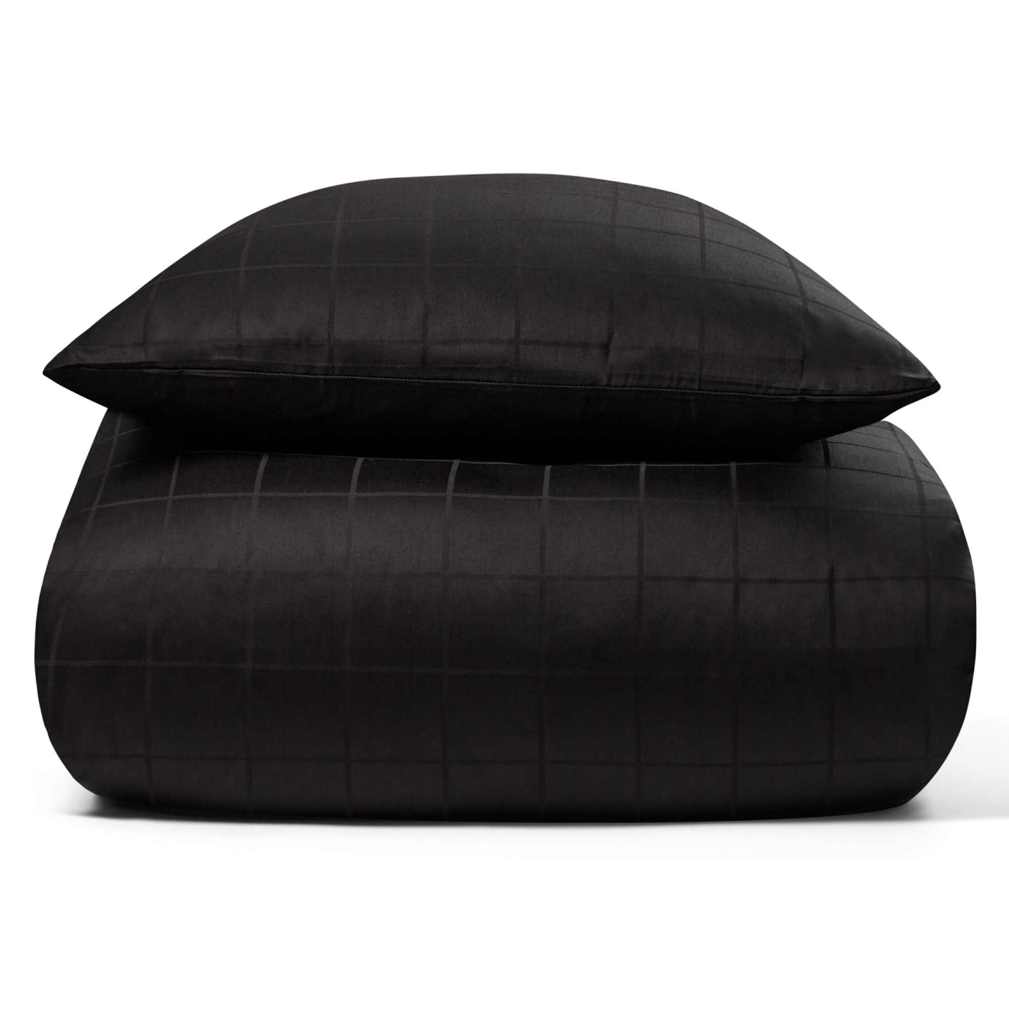 Flot og glansfuldt sengesæt fra By Night, fremstillet af jacquardvævet bomuldssatin. Den fine vævning resulterer i et blødt og åndbart sengesæt der føles behageligt mod huden. Sengetøjet er designet med tern i et smukt og stilrent look, et design der passer perfekt ind i enhver indretning.