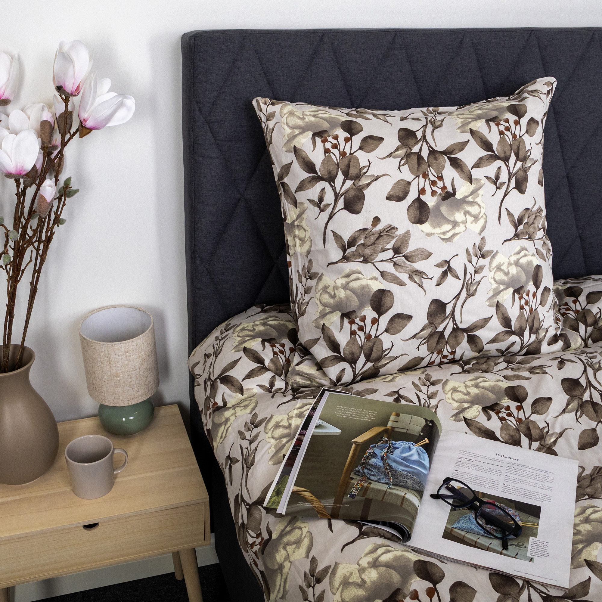 Sengetøj 150x210 cm - bomuldssatin - Blossom grey - Blomster print