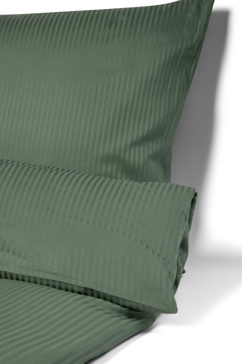 Forside » Sengetøj » Dobbelt sengetøj » King size sengetøj 240x220 cm Sengetøj - 240x220 cm - Grønt king size sengetøj - 100% Egyptisk bomuld - Ekstra blødt sengesæt fra By Borg 2 x PudebetrækSpar40% By Borg 1.999,951.199,95DKKSpar 800,- Gratis fragt på denne varePå lager Trustpilot Antal Læg i kurv Se mere fra: By Borg Artikelnummer: 94-6 Læs vores sengetøjsguide Se vores store udvalg af lagner Se vores store udvalg af dyner 240x220 Har du spørgsmål til produktet? 100% Egyptisk bomuldssatin Luksus sengetøj i bedste kvalitetFineste og blødeste vævning Dynebetræk: 240x220 cm Pudebetræk: 2 stk. á 60x63 cm Materiale: 100% egyptisk bomuldssatin Vævning: Ekstra fin 400 TC satinvævning (Thread count = antal tråde pr. kvadrat tomme) Farve: Grøn Design: Jacquardvævede striber Brand: Excellent By Borg Lukning: Dyne- og pudebetræk med lynlås Vask: 60° Tørretumbling: Ja Tåler strygning: Ja Certificering: STANDARD 100 by OEKO-TEX® (11-47542) Egyptisk bomuld er et af de fineste og mest luksuriøse materialer, der anvendes til sengetøj. Kvaliteten af sengetøj lavet af egyptisk bomuld skyldes primært den type bomuld, der dyrkes i Egypten, og den omhyggelige vævningsproces. Egyptisk bomuld kommer hovedsageligt fra Gossypium barbadense-planten, som er kendt for at producere lange og tynde fibre. De lange fibre bidrager til styrke og glathed i sengetøjet. Sengetøj i 100% egyptisk bomuldssatin er ofte kendt for sin høje trådtæthed. Trådtæthed refererer til antallet af tråde pr. kvadrattomme. Høj trådtæthed bidrager til holdbarhed og en glattere overflade. På trods af den tætte vævning er sengetøj i egyptisk bomuld kendt for at være åndbart, hvilket hjælper med at regulere kropsvarmen. Sengetøjet har også god fugtabsorberingsevne, hvilket holder sengen tør og komfortabel. Samlet set er sengetøj i egyptisk bomuld kendt for sin høje kvalitet, blødhed, glans og holdbarhed, hvilket gør det til en populær og eftertragtet valgmulighed for dem, der søger luksuriøse sengeprodukter Sengesættet lukkes med skjult lynlås lukning i både dyne og pudebetræk. Køb let matchende pudebetræk til dine ekstra puder her Frisk sengen og soveværelset op med et flot og lækkert sæt sengetøj som dette. Benyt samtidig muligheden for at sikre dig maximal sovekomfort, ved at tilføje et nyt blødt lagen af høj kvalitet. Du finder vores store sortiment af kvalitets lagner her Excellent By Borg præsenterer et sengesæt fremstillet af 100% egyptisk bomuld, jacquardvævet I et klassisk og tidsløst design. Et luksuriøst sengelinned der ikke blot er en fornøjelse for øjet, men også for kroppen. Excellent By Borg har med deres dansk producerede dyner, puder og sengetøj, fokus på komfort og søvnoptimering. De ved at kilden til en god hverdag og høj livskvalitet er forbundet med en optimal og god nattesøvn. Derfor har de gjort det nemt for dig at finde de rette sovekomponenter, der passer til netop dit behov. Produkterne i denne serie giver dig yderst høj kvalitet samt en grundig certificering. Tilbage til King size sengetøj 240x220 cm
