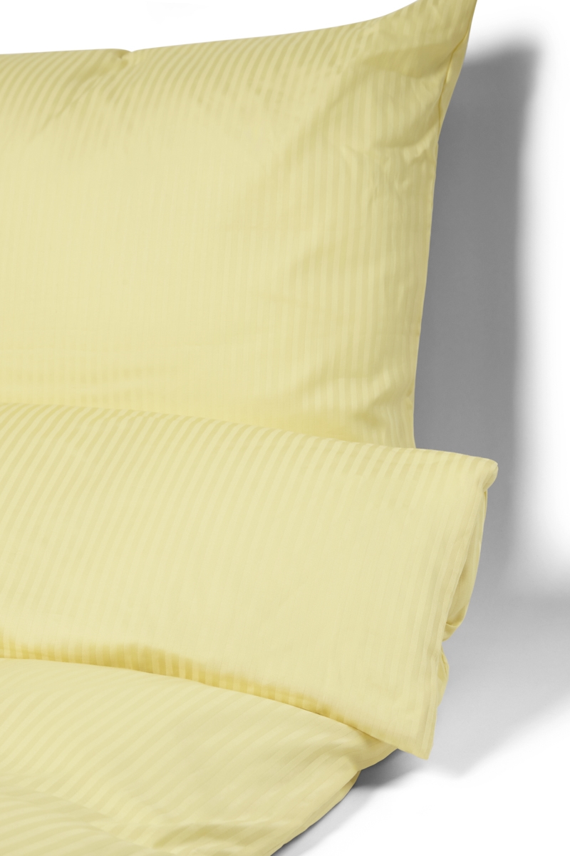 Forside » Sengetøj » Dobbelt sengetøj » King size sengetøj 240x220 cm Sengetøj - 240x220 cm - Gult king size sengetøj - 100% Egyptisk bomuld - Ekstra blødt sengesæt fra By Borg 2 x PudebetrækSpar40% By Borg 1.999,951.199,95DKKSpar 800,- Gratis fragt på denne varePå lager Trustpilot Antal Læg i kurv Se mere fra: By Borg Artikelnummer: 96-6 Læs vores sengetøjsguide Se vores store udvalg af lagner Se vores store udvalg af dyner 240x220 Har du spørgsmål til produktet? 100% Egyptisk bomuldssatin Luksus sengetøj i bedste kvalitetFineste og blødeste vævning Dynebetræk: 240x220 cm Pudebetræk: 2 stk. á 60x63 cm Materiale: 100% egyptisk bomuldssatin Vævning: Ekstra fin 400 TC satinvævning (Thread count = antal tråde pr. kvadrat tomme) Farve: Gul Design: Jacquardvævede striber Brand: Excellent By Borg Lukning: Dyne- og pudebetræk med lynlås Vask: 60° Tørretumbling: Ja Tåler strygning: Ja Certificering: STANDARD 100 by OEKO-TEX® (11-47542) Egyptisk bomuld er et af de fineste og mest luksuriøse materialer, der anvendes til sengetøj. Kvaliteten af sengetøj lavet af egyptisk bomuld skyldes primært den type bomuld, der dyrkes i Egypten, og den omhyggelige vævningsproces. Egyptisk bomuld kommer hovedsageligt fra Gossypium barbadense-planten, som er kendt for at producere lange og tynde fibre. De lange fibre bidrager til styrke og glathed i sengetøjet. Sengetøj i 100% egyptisk bomuldssatin er ofte kendt for sin høje trådtæthed. Trådtæthed refererer til antallet af tråde pr. kvadrattomme. Høj trådtæthed bidrager til holdbarhed og en glattere overflade. På trods af den tætte vævning er sengetøj i egyptisk bomuld kendt for at være åndbart, hvilket hjælper med at regulere kropsvarmen. Sengetøjet har også god fugtabsorberingsevne, hvilket holder sengen tør og komfortabel. Samlet set er sengetøj i egyptisk bomuld kendt for sin høje kvalitet, blødhed, glans og holdbarhed, hvilket gør det til en populær og eftertragtet valgmulighed for dem, der søger luksuriøse sengeprodukter Sengesættet lukkes med skjult lynlås lukning i både dyne og pudebetræk. Køb let matchende pudebetræk til dine ekstra puder her Frisk sengen og soveværelset op med et flot og lækkert sæt sengetøj som dette. Benyt samtidig muligheden for at sikre dig maximal sovekomfort, ved at tilføje et nyt blødt lagen af høj kvalitet. Du finder vores store sortiment af kvalitets lagner her Excellent By Borg præsenterer et sengesæt fremstillet af 100% egyptisk bomuld, jacquardvævet I et klassisk og tidsløst design. Et luksuriøst sengelinned der ikke blot er en fornøjelse for øjet, men også for kroppen. Excellent By Borg har med deres dansk producerede dyner, puder og sengetøj, fokus på komfort og søvnoptimering. De ved at kilden til en god hverdag og høj livskvalitet er forbundet med en optimal og god nattesøvn. Derfor har de gjort det nemt for dig at finde de rette sovekomponenter, der passer til netop dit behov. Produkterne i denne serie giver dig yderst høj kvalitet samt en grundig certificering. Tilbage til King size sengetøj 240x220 cm