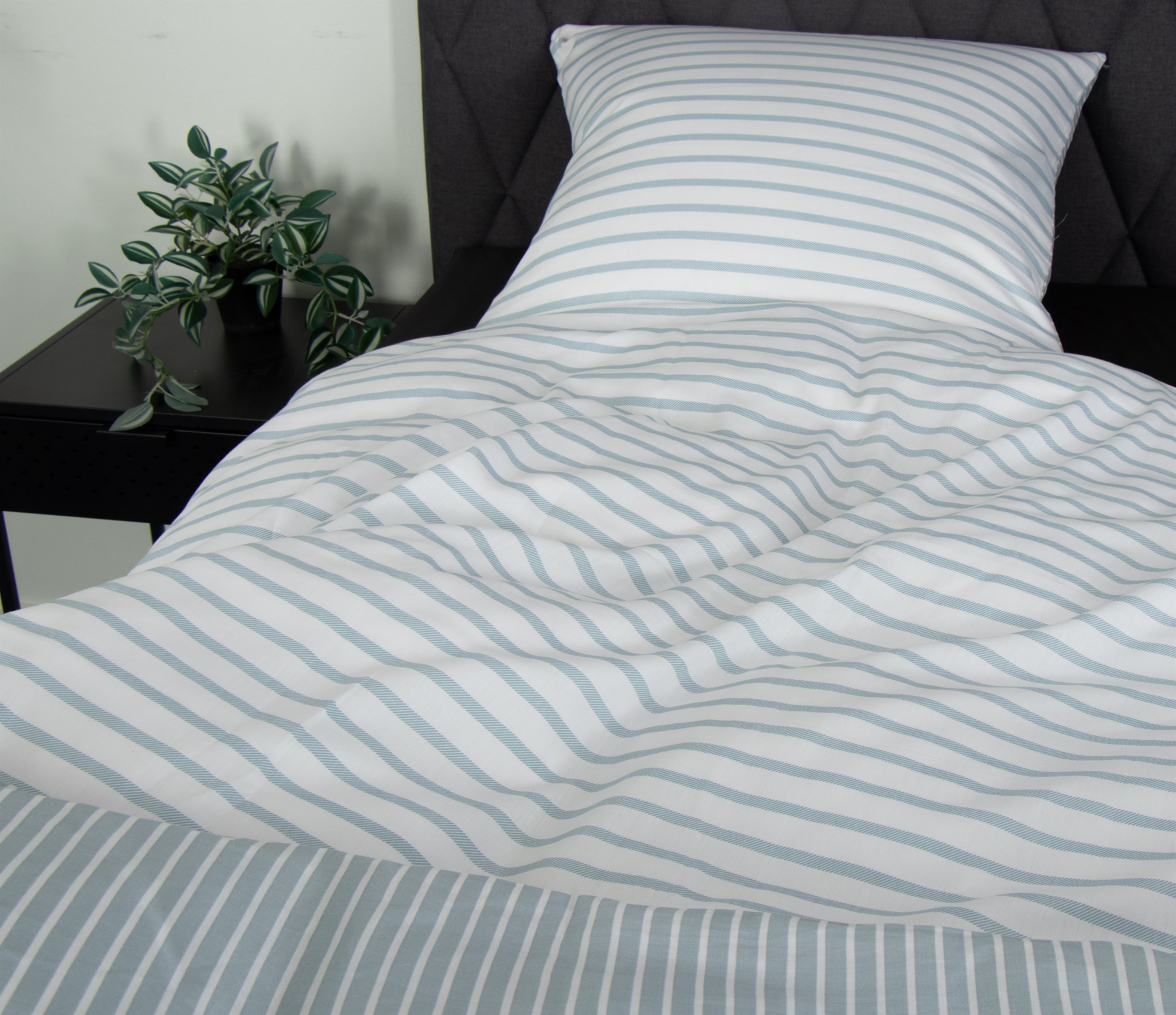 Forside » Sengetøj » Dobbelt sengetøj » King size sengetøj 240x220 cm Sengetøj 240x220 cm - Narrow lines blue - Vendbar dobbelt dynebetræk - 100% Bomuldssatin - By Night 2 x PudebetrækSpar62% Borg LivingBy Night 1.299,95499,95DKKSpar 800,- På lager Trustpilot Antal Læg i kurv Se mere fra: Borg Living Artikelnummer: 461-6 Læs vores sengetøjsguide Se vores store udvalg af lagner Se vores store udvalg af dyner 240x220 Har du spørgsmål til produktet? Sengetøj - 240x220 cm100% bomuldssatinLynlås lukning Dynebetræk: 240x220 cm Pudebetræk: 2 stk. á 60x63 cm Materiale: 100% bomuldssatin Vævning: Ekstra fin 230TC (Thread count = antal tråde pr. kvadrat tomme) Farve: Blå og Hvid - Stribet Design: Narrow lines - Blue Brand: By Night Lukning: Dyne- og pudebetræk med lynlås Vask: 60° Tørretumbling: Ja Tåler strygning: Ja Certificering: STANDARD 100 by OEKO-TEX® (11-47893) By Night sengesæt er produceret i 100% bomuldssatin. Med dette utrolige smukke og elegante sengesæt fra By Night, kan familien sove trygt og godt uden at blive udsat for unødvendige og skadelige kemikalier. Sengesættet er Dansk designet med et sprødt og raffineret udtryk der frisker rummet op. Sengesættet har print på begge sider, hvilket giver et fantastisk flot samspil mellem farver og mønstre. Sengelinnedet er 100% gennemfarvet hvilket betyder at farven, under produktionen bindes i bomuldsfibrene der herved giver en utrolig høj farve- og vaskægthed. Dyne- og pudebetræk lukkes med skjult lynlås. Køb let matchende pudebetræk til dine ekstra puder her Frisk sengen og soveværelset op med et flot og lækkert sæt sengetøj som dette. Benyt samtidig muligheden for at sikre dig maximal sovekomfort, ved at tilføje et nyt blødt lagen af høj kvalitet. Du finder vores store sortiment af kvalitets lagner her By Night er kendetegnet af dansk design - de giver dig behagelige sovekomponenter til dit nattemiljø i allerhøjeste kvalitet. By Night producerer sengetøj og lagner til hele familien og lægger stort vægt på tidens trends, således at produktionen altid indebærer moderigtige farver og designs. Tilbage til King size sengetøj 240x220 cm