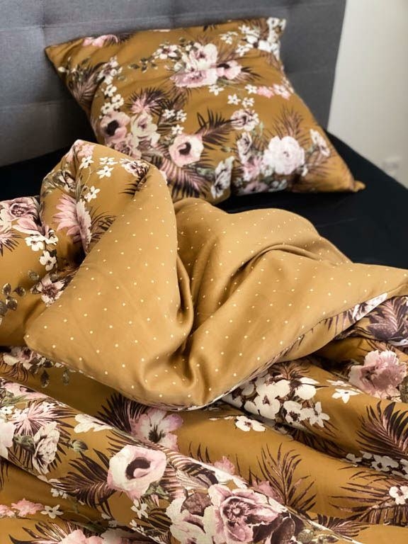Forside » Sengetøj » Dobbelt sengetøj » Dobbelt sengetøj 200x200 cm Sengetøj dobbeltdyne - 200x200 cm - Vendbart design i 100% Bomuldssatin - Flowers & Dots karry - Sengesæt fra By Night 2 x PudebetrækSpar64% Borg LivingBy Night 1.099,95399,95DKKSpar 700,- På lager Trustpilot Antal Læg i kurv Se mere fra: Borg Living Artikelnummer: 478-4 Læs vores sengetøjsguide Se vores store udvalg af lagner Se vores store udvalg af dyner 200x200 Har du spørgsmål til produktet? Kvalitetssengetøj Ekstra fin satinvævningBlødt og glansfuldt Dynebetræk: 200x200 cm Pudebetræk: 2 stk. á 60x63 cm Materiale: 100% fint bomuldssatin Vævning: Ekstra fin 240TC satinævning (Thread count = antal tråde pr. kvadrat tomme) Farve: Karry Design: Flowers & dots Vendbart: - Forside: Blomsterprint - Bagside: Prikker Brand: By Night Lukning: Dyne- og pudebetræk med skjult YKK lynlås Vask: 60° Tørretumbling: Ja Tåler strygning: Ja Certificering: STANDARD 100 by OEKO-TEX® (2018OK0658) Sengetøj i 100% tætvævet bomuldssatin. Dette sengesæt fra By Night er kendt for sin smukke og glatte overflade, der føles dejlig og blød mod huden. Det gode ved bomuldssatin er, at det er åndbart og holder dig behagelig kølig om sommeren og varm om vinteren, en egenskab der gør sengetøjet anvendeligt året rundt. Derudover er sengelinnedet 100% gennemfarvet, hvilket indebærer at farven er bundet i bomuldsfibrene under produktionen. Dette resulterer i en utrolig høj farve- og vaskeægthed. Sengesættet er OEKO-TEX® certificeret. Certificeringen sikrer, at produktet ikke indeholder sundhedsskadelige stoffer, og at det er produceret under ordentlige forhold, så du kan sove trygt om natten -så passer vi også godt på miljøet. Vendbart design: Sengetøjet er fremstillet i et vendbart design, der betyder at begge sider af sengetøjet er mønstret eller farvet. Et vendbart sengesæt giver dig mulighed for, at skifte udseende ved at vende det om, samt mulighed for at matche med forskellige dekorationer eller farver i soveværelset. Vendbart design - for en mere fleksibel indretning! Sengesættet er et populært valg for dem, der ønsker et lækkert sengelinnede med et smukt og stilfuldt udtryk. Dyne- og pudebetræk lukkes med skjult YKK lynlås. Køb let matchende pudebetræk til dine ekstra puder her Frisk sengen og soveværelset op med et flot og lækkert sæt sengetøj som dette. Benyt samtidig muligheden for at sikre dig maximal sovekomfort, ved at tilføje et nyt blødt lagen af høj kvalitet. Du finder vores store sortiment af kvalitets lagner her By Night er kendetegnet af dansk design - de giver dig behagelige sovekomponenter til dit nattemiljø i allerhøjeste kvalitet. By Night producerer sengetøj og lagner til hele familien og lægger stort vægt på tidens trends, således at produktionen altid indebærer moderigtige farver og designs. Tilbage til Dobbelt sengetøj 200x200 cm