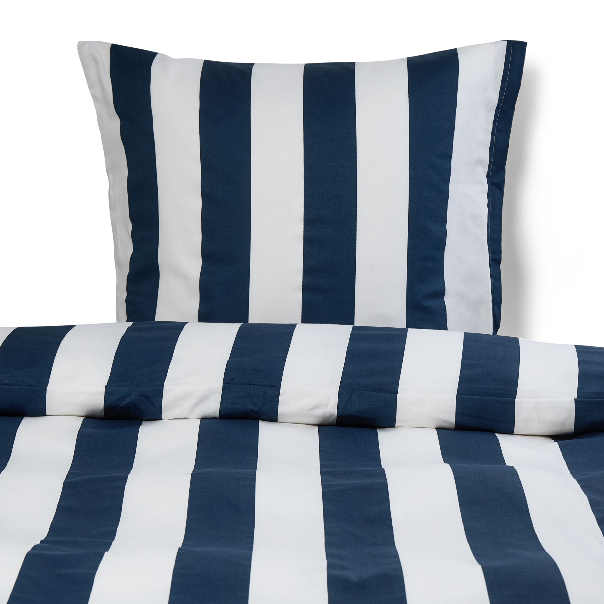 Sengetøj i 100% blødt og lækkert bomuldssatin - 200x200 cm - Flotte blå striber - Nordic Stripe sengesæt fra By Night