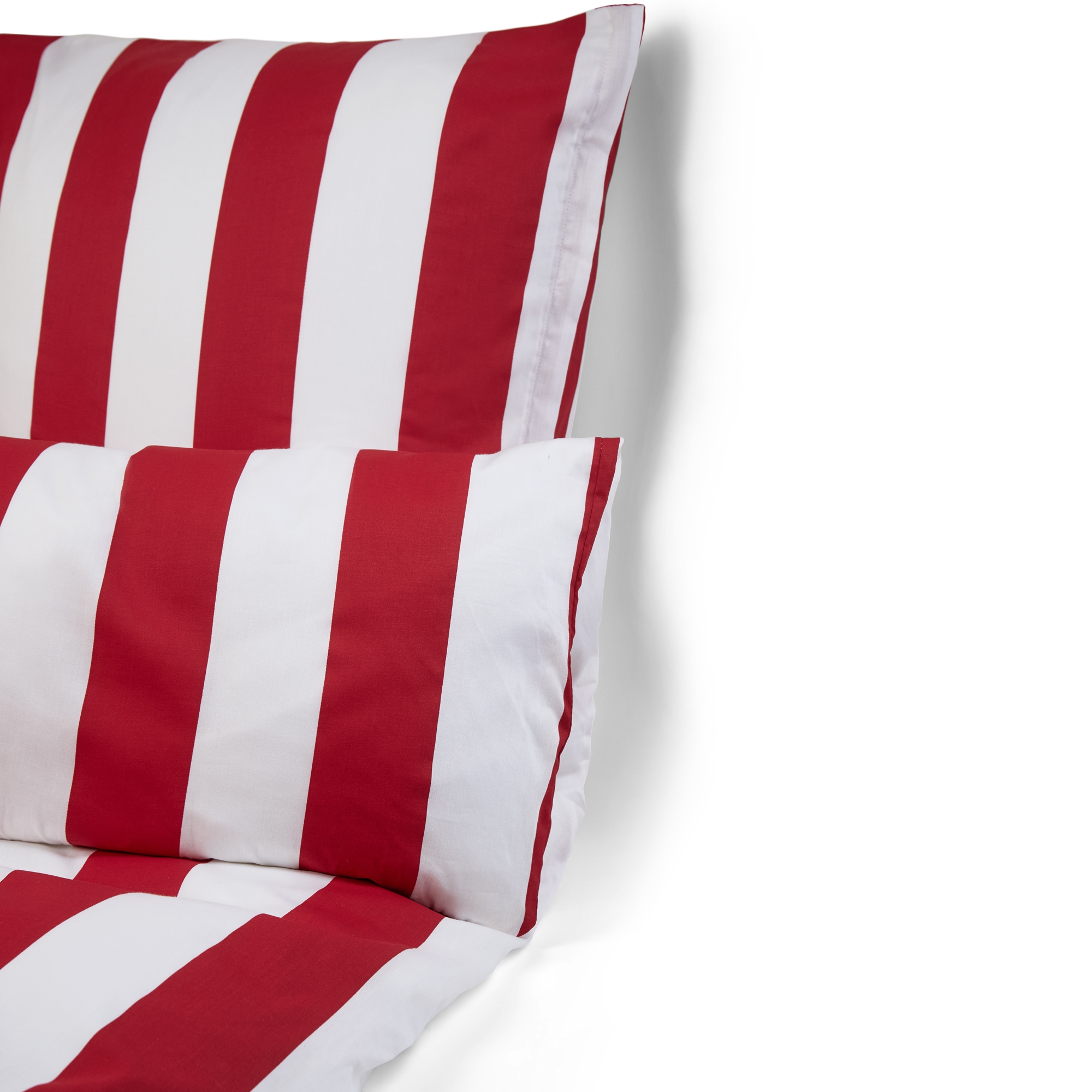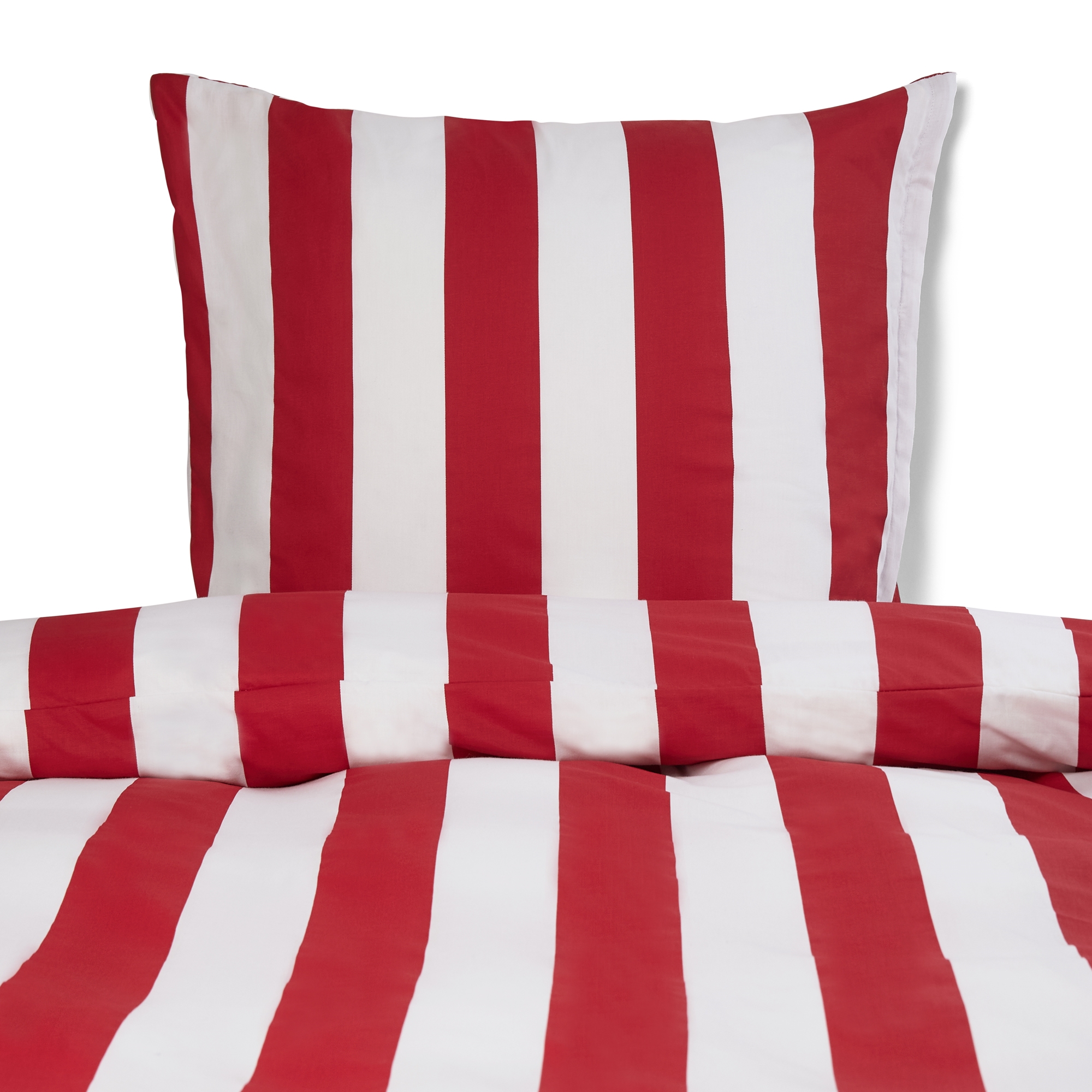 Sengetøj i 100% blødt og lækkert bomuldssatin - 200x200 cm - Flotte røde striber - Nordic Stripe sengesæt fra By Night