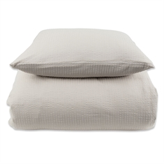 Sengetøjet er i 100% bomuld og minder lidt om krepp sengetøj. Det er fremstillet af glatvævet bomuld, hvor der er påsat rynkeeffekt, som giver en flot struktur i sengetøjet. Den bølgende struktur er ikke kun for syns skyld, men gør også at luften kan cirkulere mellem hud og stof - så man opnår en behagelig kropstemperatur.