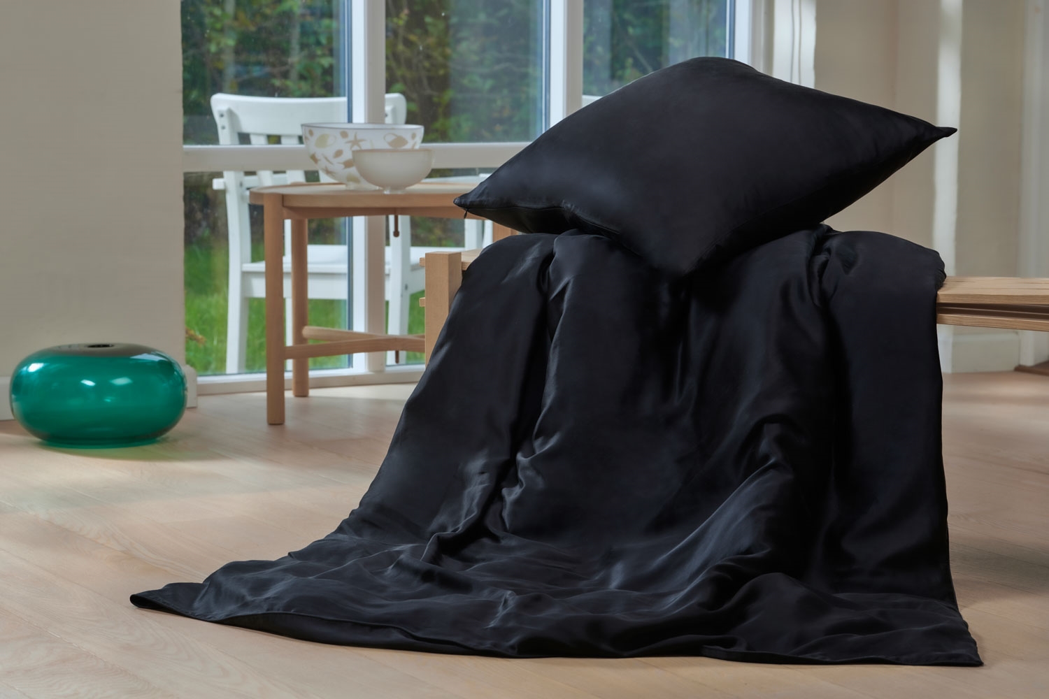 Forside » Sengetøj » Dobbelt sengetøj » Dobbelt sengetøj 200x200 cm Silke sengetøj 200x200 cm - Ensfarvet sort sengetøj til dobbeltdyne - 100% Silke - Butterfly Silk 2 x PudebetrækSpar31% Butterfly Silk 4.199,952.899,95DKKSpar 1.300,- Gratis fragt på denne vareFå på lager Trustpilot Antal Læg i kurv Se mere fra: Butterfly Silk Artikelnummer: 4001144 Læs vores sengetøjsguide Se vores store udvalg af lagner Se vores store udvalg af dyner 200x200 Har du spørgsmål til produktet? Sengetøj - 200x200 cm100% morbærsilke Eksklusivt blødt sengesæt Dynebetræk: 200x200 cm Pudebetræk: 2 stk. á 60x63 cm Materiale: 100% Silke Vævning: Silke med 19 momme satinvævning Farve: Sort Design: Ensfarvet Brand: Butterfly Silk Lukning: Dyne- og pudebetræk med lynlås Vask: 30° (Vigtigt at anvende Enzymfrit vaskemiddel) Tørretumbling: Nej Tåler strygning: Nej Certificering: STANDARD 100 by OEKO-TEX® (1176-194DTI) Silkesengetøj fra Butterfly Silk er fremstillet af det fineste morbærsilke, i en kraftig silkesatin kvalitet med en høj momme på 19. Hvis du mangler det ekstra luksuriøse til soveværelset, vil vi anbefale dig et silkesengesæt. Det er velegnet til til dig der vil have den bedste komfort, velvære og ren følelse af nydelse. Sengetøjet kommer i en flot og elegant sort farve, så du får den eksklusive luksus hotel følelse i hjemmet. Silke sengetøj tilpasser sig kroppens temperatur, er fugtabsorberende, antibakterielt og allergivenligt. Det er meget velegnet til krøllet hår og sart/følsom hud, grundet den fine og glatte overflade. Køb let pudebetræk til dine ekstra puder her Silkesengetøj kan vaskes på 30°s skånevask og med enzymfrit vaskemiddel, sengetøjet bør desuden vaskes alene. Det er et fint og let sengesæt, og tåler derfor ikke tørretumbler, men skal lufttørre. Husk altid at vende det på vrangen og lukke lynlåsen, for at vedligeholde det bedst muligt. Du finder vores store sortiment af kvalitets lagner her, heriblandt de lækre silkelagner Tilbage til Dobbelt sengetøj 200x200 cm
