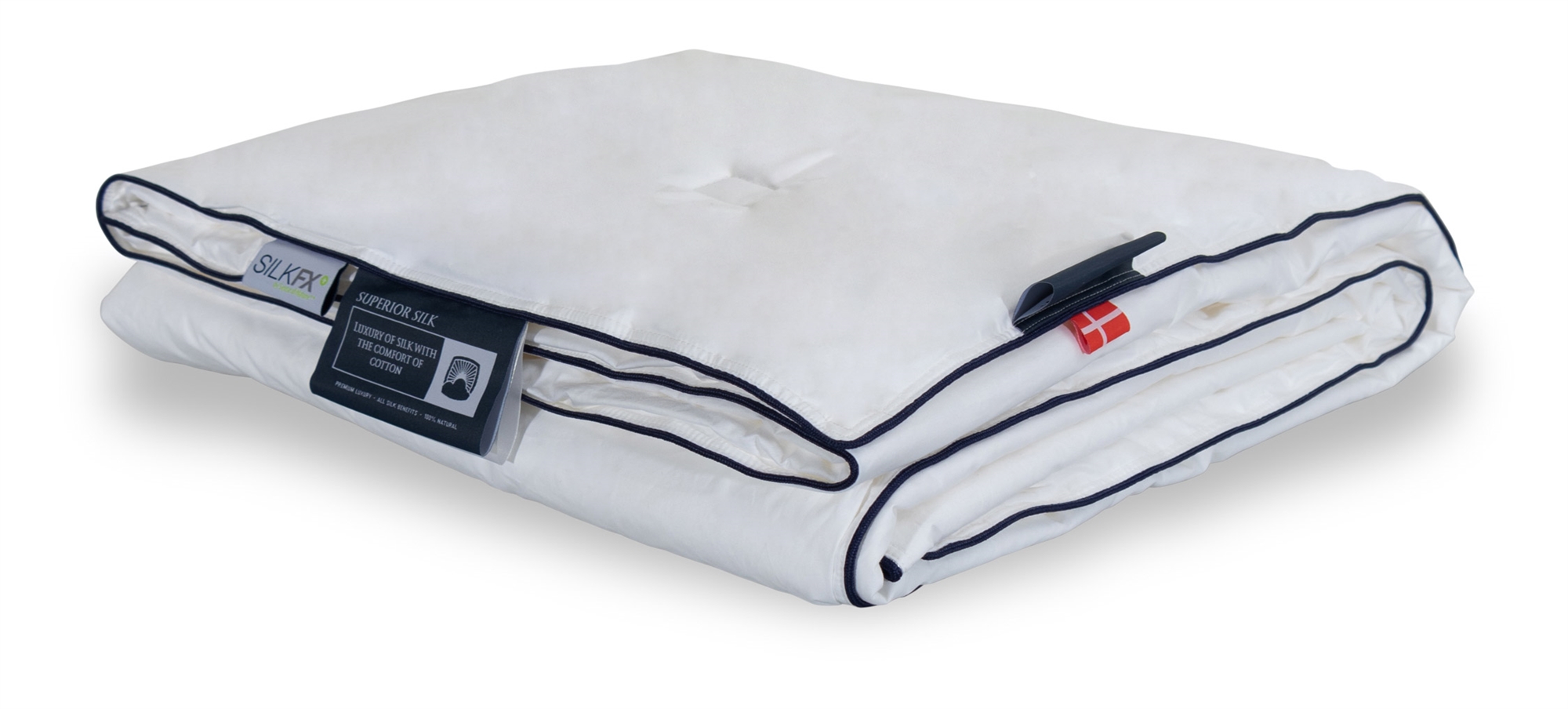 Forside » Dyner » Dyne type » Silke dyner Silke sommerdyne 140x220 cm med 100% langfibret mulberry silke - Nordic Comfort Superior - Sval silkedyne Spar25% Nordic comfort 1.999,951.499,95DKKSpar 500,- Gratis fragt på denne vareFå på lager Trustpilot Vælg størrelse Vælg variant Antal Læg i kurv Se mere fra: Nordic comfort Artikelnummer: 5301 Læs vores dyneguide Læs om vedligeholdelse af dyner og puder Se vores store udvalg af puder Har du spørgsmål til produktet? Sommerdyne - Nordic Comfort - Superior silkLeveres med eksklusiv bæretaske100% langfibret mulberry silke Størrelse: 140x220 cm enkelt dyne med ekstra længde Type: Sommerdyne - sval dyne Brand: Nordic Comfort - Superior Silk sommer silkedyne Silketæthed: 150 g m2 Fyldvægt: 460 g Fyld: Langfibret mulberry silke Bolster: Blødt eksklusivt tætvævet bomulds cambric Vask: Ja maskinvaskes (Vigtigt at anvende Enzymfrit vaskemiddel) Tørretumbling: Skal liggetørre Garanti: 10 år Leveres med eksklusiv bæretaske Certificering: STANDARD 100 by OEKO-TEX® (SHHO 090844) Se alle vores silkepuder her SuperiorSilk dynen er lavet af SilkFX, som er langfibret Mulberry silkefyld og med 100 % bomuldscambric udenpå. Våren af bomuldscambric gør, at dynen føles mere som en traditionel dyne og er tungere end f.eks. Silk Excellence dynen med silkevår. Superior Silk dynen er med SilkFX teknologi, så du nemt kan vaske dynen hjemme. Vi anbefaler Superior Silk dynen til dig, som gerne vil have en høj kvalitetsdyne med silkens gode egenskaber, samt for nemhedens skyld at kunne vaske den hjemme. Nordic Comfort® er Danmarks mest solgte type sommer silkedyne! Det er der selvfølgelig en grund til. Evner: Luksuriøs silkefiber Oplev det ultimativ inden for sovemiljø Temperaturregulerende Forbedrer sund og dyb søvn som tilpasser sig din kropstemperatur Allergivenlig Afviser husstøvmider og allergener - mindre allergiske reaktioner Antibakteriel Renere og sundere sovemiljø Fugtabsorberende Reducerer nattesved og fugtigt sovemiljø Åndbar Lader din krop ånde naturligt og reducerer natlige overophedning Nordens mest solgte silkeprodukter er fra Nordic Comfort. Brandet er stiftet i 2007, og har til formål at producere et lækkert silkesortiment i allerhøjeste kvalitet til forbrugeren. Så du med hjælp fra deres søvneksperter, kan opnå en optimal og forbedret nattesøvn. Tilbage til Silke dyner Måske er du også interesseret i: Silkepude - 60x63 cm - "Mellem" hovedpude - Superior - Nordic ComfortSilkepude mellem - Superiorsilk Nordic Comfort Microgel + SilkFX mulberry Silke Vejl. udsalgspris : 799,95 Spar : 200,00 999,95 DKK599,95 DKK