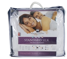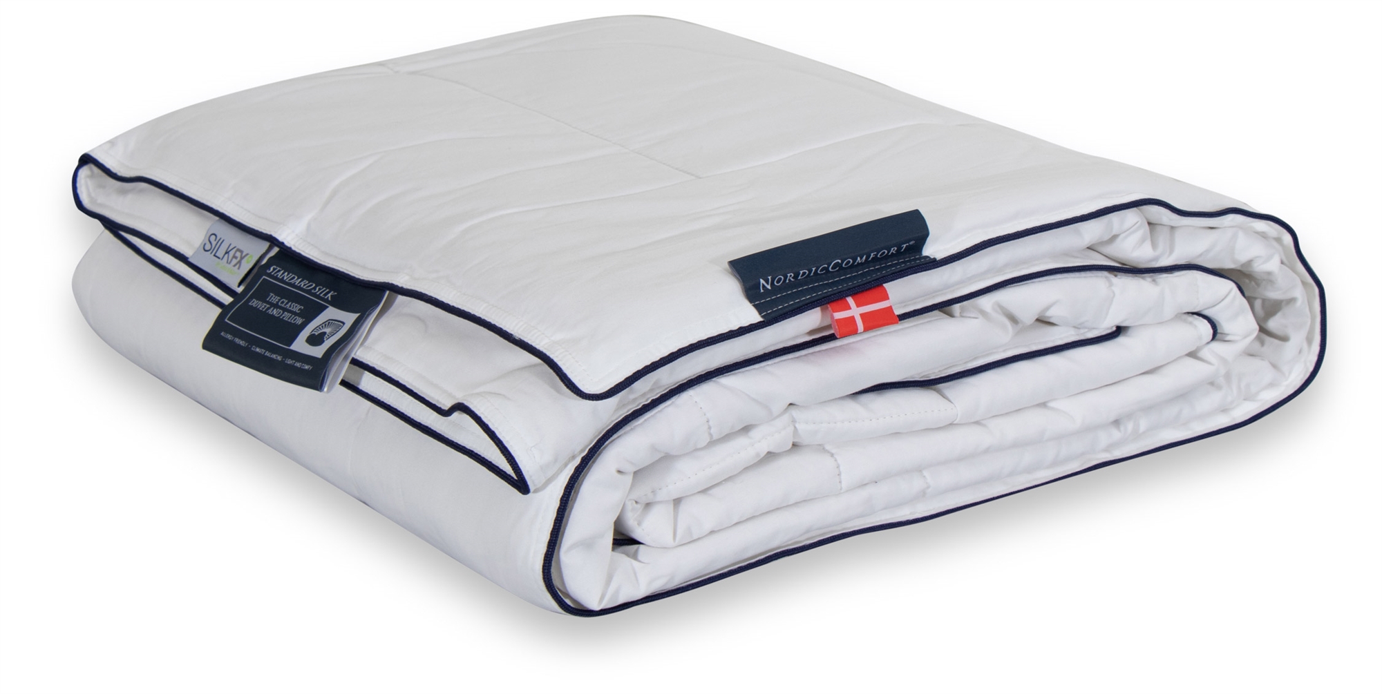 Forside » Dyner » Dyne type » Silke dyner Silkedyne - Helårs Lun - 150x210 cm - Nordic comfort Spar43% Nordic comfort 2.299,951.299,95DKKSpar 1.000,- Gratis fragt på denne varePå lager Trustpilot Vælg størrelse Vælg variant Antal Læg i kurv Se mere fra: Nordic comfort Artikelnummer: 7151 Læs vores dyneguide Læs om vedligeholdelse af dyner og puder Se vores store udvalg af puder Har du spørgsmål til produktet? Silkedyne - Standard silkFra: Nordic comfort100% Mulberry (Morbær) silke Størrelse: 150x210 cm Type: Helårsdyne lun Brand: Nordic Comfort - Standard Silk Silketæthed: 325g m2 Fyldvægt: 1025g Fyld: 100% mulberry (morbær) silke Bolster: 100% Blødt bomulds super cambric Vask: Ja maskinvaskes (Vigtigt at anvende Enzymfrit vaskemiddel) Garanti: 5 år Leveres i opbevaringstaske Certificering: Crossvent Certificering: SilkFX Certificering: STANDARD 100 by OEKO-TEX® (SHHO 090844) Se alle vores silkepuder her NordicComfort® er Danmarks mest solgte type silkedyne! Det er der selvfølgelig en grund til. Dokumenterede fordele - bevist ved forskning! Allergivenlig Anti-Bakteriel Væske absorberende og afledende Temperatur regulerende Silkedynen er temperatur regulerende, og særdeles fugttranspoterende, samt allergivenlig. Vi anbefaler Silk Standard til dig, som ønsker den originale silkedyne, hvor du får absolut mest ud af de gode egenskaber. Silkedynen er fyldt med 100% Morbær silke, morbær silke anses som den bedste type silke til at producere dyner af. Dynen er med et betræk at 100% bomulds cambric. Standard sikedynen er med SilkFX teknologi, så du nemt kan vaske dynen hjemme. Tilbage til Silke dyner