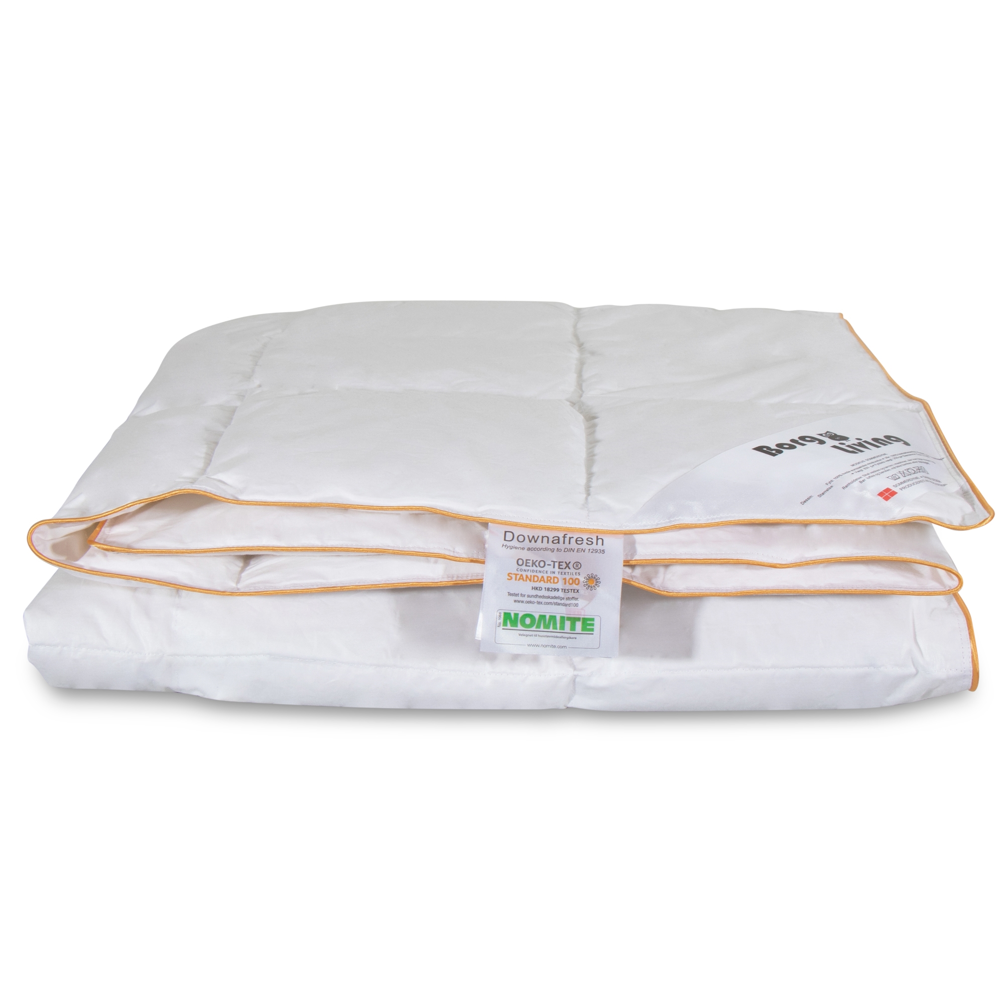 Forside » Dyner » Enkelt dyner » Enkelt dyne 150x210 cm (Svensk mål) Sommerdyne - 100% Rene hvide moskusdun - 150x210 cm - Let og luftig sommer dundyne fra Borg Living Spar72% Borg Living 2.499,95695,00DKKSpar 1.805,- Gratis fragt på denne varePå lager Trustpilot Antal Læg i kurv Se mere fra: Borg Living Artikelnummer: BL230-3 Læs vores dyneguide Læs om vedligeholdelse af dyner og puder Se vores store udvalg af puder Har du spørgsmål til produktet? Luksus sommerdyne - Let og luftigNOMITE certificeret - Allergivenlig 100% Rene, hvide moskusdun Størrelse: 150x210 cm - enkelt dyne Type: Sommerdyne - Sval dyne Fyld: 100% Rene, hvide europæiske moskusdun Brand: Borg Living Fyldvægt: 290 g Bæreevne: Over 12 (Gammel målemetode) Bæreevne: 800 (Ny målemetode) Bolster: 100% Super bomuldscambric 80/80 Konstruktion: 7x10 Gennemsyet kassettedyne med guld piping kant Vask: 60° (Vigtigt at anvende Enzymfrit vaskemiddel) Tørretumbling: Tørretumbles med tørrebolde Garanti: 5 år Certificering: NOMITE - Fri for husstøvmider Certificering: Downafresh - 100% rene dun Certificering: STANDARD 100 by OEKO-TEX® (BEHO-062282) / HKD 18299 TESTEX Certificering: Downpass - Højeste dyreetiske forhold (06458131) Se alle vores hovedpuder her Dejlig kølig og luftig sommerdyne med 100% europæiske moskusdun - perfekt til de varme sommernætter. Dynen er ekstra let og luftig og anbefales derfor til dig som har det varmt om natten, og som har tendens til at svede når du sover. Dynens bolster er gennemsyet, hvilket betyder at dynen har små kanaler mellem kassetterne, der kan hjælpe med at forbedre luftcirkulationen. Dette sikrer en optimal balance mellem varme og åndbarhed. Dynens 100% bløde, fine edderduns lignende moskusdun gør isoleringsevnen helt unik. Dyner med 100% dun er ofte mere slidstærke end blandingsdyner. Med korrekt pleje kan de holde i mange år uden at miste deres blødhed eller isoleringsevne. Dynen har en høj bæreevne på over 12, hvilket er et udtryk for dunenes egenskaber til at holde på varmen og lede overskydende fugt væk - jo højere bæreevne, des bedre kvalitet. De bløde og lette dun gør, at dynen falder let omkring kroppen. Dynen er syet i kassetter, så dunene fordeler sig jævnt i dynen. Sommerdynen har et dejligt blødt bolster i 100% super bomuldscambric som er så tætvævet, at støvmider ikke kan trænge igennem. Se vores store udvalg af sengetøj i størrelsen 150x210 cm her Sommerdynen har en lang række certificeringer, som er din garanti for en god og hygiejnisk kvalitetsdyne. Dynen er NOMITE certificeret, hvilket betyder at dynen er yderst velegnet til allergikere, idet den er fri for husstøvmider. Ligeledes er dynen Downafresh certificeret – En certificering der garanterer dig, at de dun der er anvendt under produktionen, er vasket og rengjorte efter de strenge krav om europæiske standarter. Downafresh certificeringen garanterer også, at de indsamlede dun lever op til lovgivningen omkring ordentlig dyrevelfærd. Det danske brand Borg Living producerer eksklusive serier af dyner, puder og boligtekstiler til dit hjem. Brandet som er etableret i 2013 og er bl.a. kendt for deres nytænkning indenfor kvalitet og design. Borg Livings fantastiske produkter, bidrager til en optimal og behagelig nattesøvn samt udsmykker dit hjem med moderne og lækkert boligtilbehør. Tilbage til Enkelt dyne 150x210 cm (Svensk mål) Måske er du også interesseret i: Sommer silkedyne 140x200cm - Sval sommerdyne med 100% mulberry silke fyld - Nordic comfort dyne Sommerdyne - Nordic Comfort Leveres med eksklusiv bæretaske 100% rent Mulberry silkefyld Vejl. udsalgspris : 1.499,95 Spar : 700,00 1.499,95 DKK799,95 DKK Dansk Gåsedunsdyne - 150x210 cm - Sommerdyne - Premium by Borg Sommerdyne - By Borg Bæreevne: Over 11 100% gåsedun 2.799,95 DKK899,95 DKK