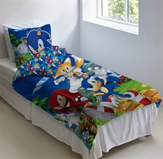 Forside » Sengetøj » Børne sengetøj » Børne sengetøj 140x200 cm Sonic sengetøj 140x200 cm - Vendbart sengesæt med Sonic The Hedgehog og venner - 100% blødt bomulds sengelinned Licens 199,95DKK På lager Trustpilot Antal Læg i kurv Se mere fra: Licens Artikelnummer: B2209-1 Læs vores sengetøjsguide Se vores store udvalg af lagner Se vores store udvalg af dyner 140x200 Har du spørgsmål til produktet? Høj åndbarhedBlødt og lækkert bomuldOEKO-TEX® certificeret Dynebetræk: 140x200 cm Pudebetræk: 60x63 cm Materiale: 100% blød bomuld Farve: Blå Motiv: Vendbart design - forside med Sonic og vennerne, bagside med all-over print af Sonic Lukning: Dynebetræk med knapper, pudebetræk med overlap Vask: 60° Tørretumbling: Ja Tåler strygning: Ja Certificering: STANDARD 100 by OEKO-TEX® (2022OK2846 AITEX). Din garanti for at produktet er fri for sundhedsskadelig kemi. Sengesæt i 100% bomuld, med Sonic og venner. Produceret med lette og åndbare bomuldsfibre giver det sengesættet en følelse af blødhed, der gør at dynen vil falde natuligt rundt om dit barn. Et slidestærkt sengesæt med høj åndbarhed, som vil gøre sengetid til en glædelig oplevelse. Skab en hyggelig og tryg stemning på børneværelset med dette sjove og farverige Sonic sengesæt. Det vendbare sengesæt har et sødt motiv med det blå, superhurtige pindsvin, Sonic og vennerne på forsiden, mens bagsiden har et flot all-over print. Det perfekte valg til børn, der elsker Sonic - og til forældre, der ønsker at gøre sengetid til en god oplevelse. Sengesættet er produceret i 100% blød bomuld som gør sættet slidestærkt og med høj åndbarhed. Den rene bomuldskvalitet giver et lækkert og blødt sengesæt, der er med til at fremme en sovekomfort for barnet. Bomuldssengetøj kan vaskes ved 60° i vaskemaskinen, som er også et med til at holde et et højt hygiejne niveau. Sengetøjet er yderligere fremstillet med OEKO-TEX certificeret, hvilke er din garanti for at sættet er fri for skadelig kemi. Gå på udkig efter favoritterne og meget mere, i vores store udvalg af tilbehør til børneuniverset For barnet bør sengen være et trygt sted og alle elementerne skal til sammen skabe bløde og dejlige omgivelser for barnet at finde ro i. Brug derfor gerne barnets interesser, til at skabe et trygt soverum for barnet. Hos os kan du finde et stort udvalg af tilbehør til sengen og børneværelset, lige fra lagner til dyner, puder, sengetøj og meget mere, og massere af produkter med alle børnenes favoritter på. Alt sammen elementer som kan være med til at skabe det rette sove miljø og værelse til dit barn. Her kan du finde lækre og bløde kvalitets lagner Tilbage til Børne sengetøj 140x200 cm