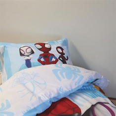 Forside » Sengetøj » Børne sengetøj » Børne sengetøj 140x200 cm Spidey sengetøj 140x200 cm - Vendbart sengesæt med Spidey og hans fantastiske venner - 100% blødt bomulds sengelinned Licens 249,95DKK På lager Trustpilot Antal Læg i kurv Se mere fra: Licens Artikelnummer: 5460-1 Læs vores sengetøjsguide Se vores store udvalg af lagner Se vores store udvalg af dyner 140x200 Har du spørgsmål til produktet? Høj åndbarhedBlødt og lækkert bomuldOEKO-TEX® certificeret Dynebetræk: 140x200 cm Pudebetræk: 60x63 cm Materiale: 100% blød bomuld Farve: Blå Motiv: Vendbart - Forside med Spidey og hans fantastiske venner, bagside med edderkopper Lukning: Dynebetræk med knapper, pudebetræk med overlap Vask: 60° Tørretumbling: Ja Tåler strygning: Ja Certificering: STANDARD 100 by OEKO-TEX® (2011PK0073 AITEX). Din garanti for at produktet er fri for sundhedsskadelig kemi. Sengesæt i 100% bomuld, med figurene fra Spidey. Produceret med lette og åndbare bomuldsfibre giver det sengesættet en følelse af blødhed, der gør at dynen vil falde natuligt rundt om dit barn. Et slidestærkt sengesæt med høj åndbarhed, som vil gøre sengetid til en glædelig oplevelse. Skab en hyggelig atmosfære på børneværelse med dette Spidey sengesæt. Sengesættet er vendbart. Med et sejt design af Spidey og hans fantastiske venner på forsiden og et fedt edderkoppeprint på bagsiden, vil dette sengetøj helt sikkert gøre sengetid til en glædelig oplevelse. Sengesættet er produceret i 100% blød bomuld som gør sættet slidestærkt og med høj åndbarhed. Den rene bomuldskvalitet giver et lækkert og blødt sengesæt, der er med til at fremme den gode sovekomfort for barnet. Sengetøjet er også OEKO-TEX certificeret, hvilke er din garanti for at sættet er fri for skadelige stoffer, så det er sikkert for barnet at bruge. Se vores store udvalg af tilbehør til børneværelset For barnet bør sengen være et trygt sted og alle elementerne skal til sammen skabe bløde og dejlige omgivelser for barnet at finde ro i. Brug derfor gerne barnets interesser, til at skabe et trygt soverum for barnet. Hos os kan du finde et stort udvalg af tilbehør til sengen og børneværelset, lige fra lagner til dyner, puder, sengetøj og meget mere, og massere af produkter med alle børnenes favoritter på. Alt sammen elementer som kan være med til at skabe det rette sove miljø og værelse til dit barn. Her kan du finde lækre og bløde kvalitets lagner Tilbage til Børne sengetøj 140x200 cm Måske er du også interesseret i: Junior sengetøj 100x140 cm - Blødt hvidt sengesæt i 100% egyptisk bomuldssatin - Turiform sengelinnedHøj kvalitet Ekstra fin, blød & åndbar Jacquardvævet Vejl. udsalgspris : 449,95 Spar : 204,95 499,95 DKK245,00 DKK Boxlagen 70x140 cm - Hvid - 100% ekstra fin bomuldssatin - Faconlagen til juniormadrasBoxlagen - Hvid 100% bomuldssatin 70x140x15 cm Vejl. udsalgspris : 349,95 Spar : 100,00 349,95 DKK249,95 DKK Junior rullemadras - 70x140 cm - Kogeægte Bomuld - Borg LivingÅndbart og allergivenlig Blødt bomuld OEKO-TEX® certificeret 349,95 DKK199,95 DKK Juniordyne - Moskusdun - 100x140 cm - Helårs junior dyne - Borg Living dundyne100% moskusdundyne Bæreevne: over 12 Helårsdyne Vejl. udsalgspris : 1.599,95 Spar : 1.104,95 1.599,95 DKK495,00 DKK