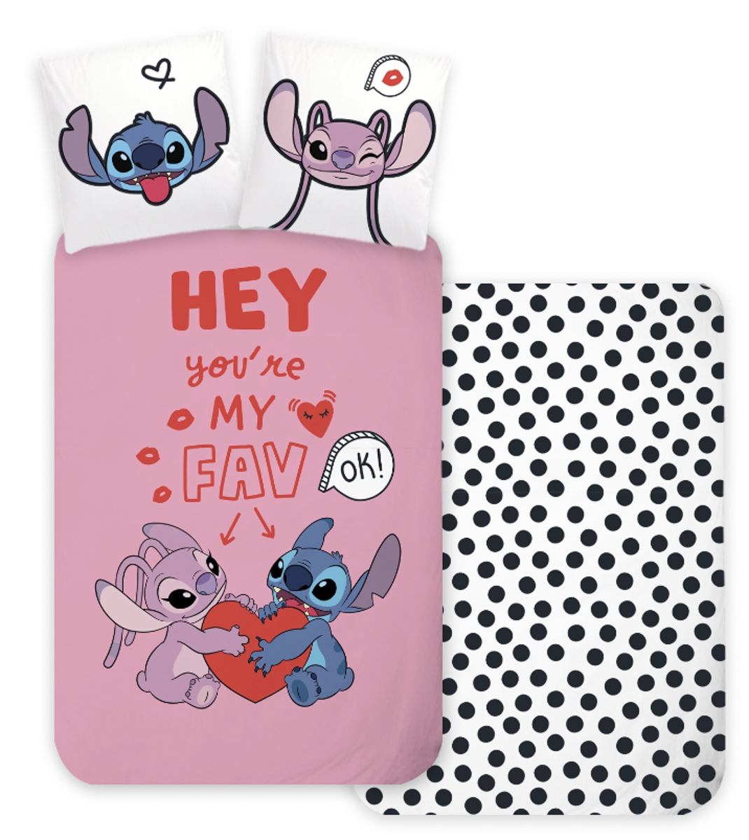 Forside » Sengetøj » Børne sengetøj » Junior sengetøj 100x140 cm Stitch sengetøj - 100x140 cm - Lilo og Angel sengesæt - 100% bomulds sengetøj Spar17% Licens 199,95165,00DKKSpar 35,- På lager Trustpilot Antal Læg i kurv Se mere fra: Licens Artikelnummer: 1951-8 Læs vores sengetøjsguide Se vores store udvalg af lagner Se vores store udvalg af dyner 140x200 Har du spørgsmål til produktet? Høj åndbarhed100% blødt, vævet bomuldOEKO-TEX® certificeret Dynebetræk: 100x140 cm - junior sengesæt Pudebetræk: 40x45 cm Materiale: 100% fint vævet bomuld Farve: Lyserød Motiv: Stitch og Angel Design: Vendbar - Forside med motiv af Stitch og Angel, bagside med prikker Lukning: Dyne med knapper og pudebetræk med overlap Vask: 60° Tørretumbling: Ja Tåler strygning: Ja Certificering: STANDARD 100 by OEKO-TEX® (2011PK0073 AITEX). Din garanti for at produktet er fri for sundhedsskadelig kemi. Blødt sengetøj i 100% bomuld, med design af Stitch og Angel med et hjerte. Produceret med lette og åndbare bomuldstråde som giver sengesættet en følelse af blødhed, der gør at dynen føles dejlig for dit barn at sove med. Balancen i naturlig egenskaber og komfort fra det bløde materiale, kombineret med det hyggelige design, gør dette sæt til en sikker favorit hos dit barn. Sengetøjet er i et vendbart design. På forsiden ses Stitch og Angel der holder et hjerte og tekst, og på bagsiden er der prikker. Sengesættet er produceret i 100% fint vævet bomuld som gør sættet slidestærkt, behageligt og sikrer høj absorbering samt åndbarhed. Den rene bomuldskvalitet giver et lækkert sengesæt, som ovenikøbet er let at vedligeholde og skaber et dejligt sovemiljø for dit barn. Se vores store udvalg af Disney produkter For barnet bør sengen være et trygt sted og alle elementerne skal til sammen skabe bløde og dejlige omgivelser for barnet at finde ro i. Brug derfor gerne barnets interesser, til at skabe et trygt soverum for barnet. Hos os kan du finde et stort udvalg af tilbehør til sengen og børneværelset, lige fra lagner til dyner, puder, sengetøj og meget mere, og massere af produkter med alle børnenes favoritter på. Alt sammen elementer som kan være med til at skabe det rette sove miljø og værelse til dit barn. Her kan du finde lækre og bløde kvalitets lagner Tilbage til Junior sengetøj 100x140 cm