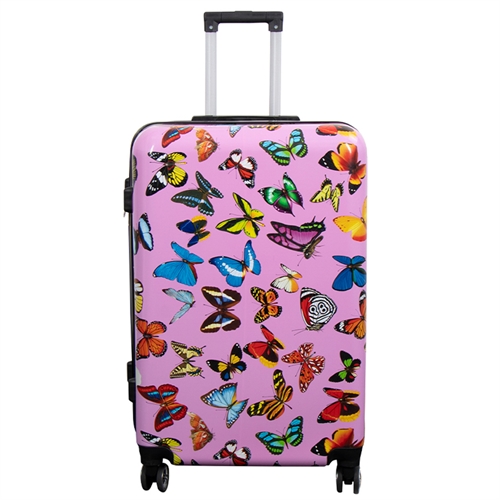 Stor kuffert i en solid og praktisk udgave. Kufferten har et flot og let genkendeligt motiv med - Pink med sommerfugle print