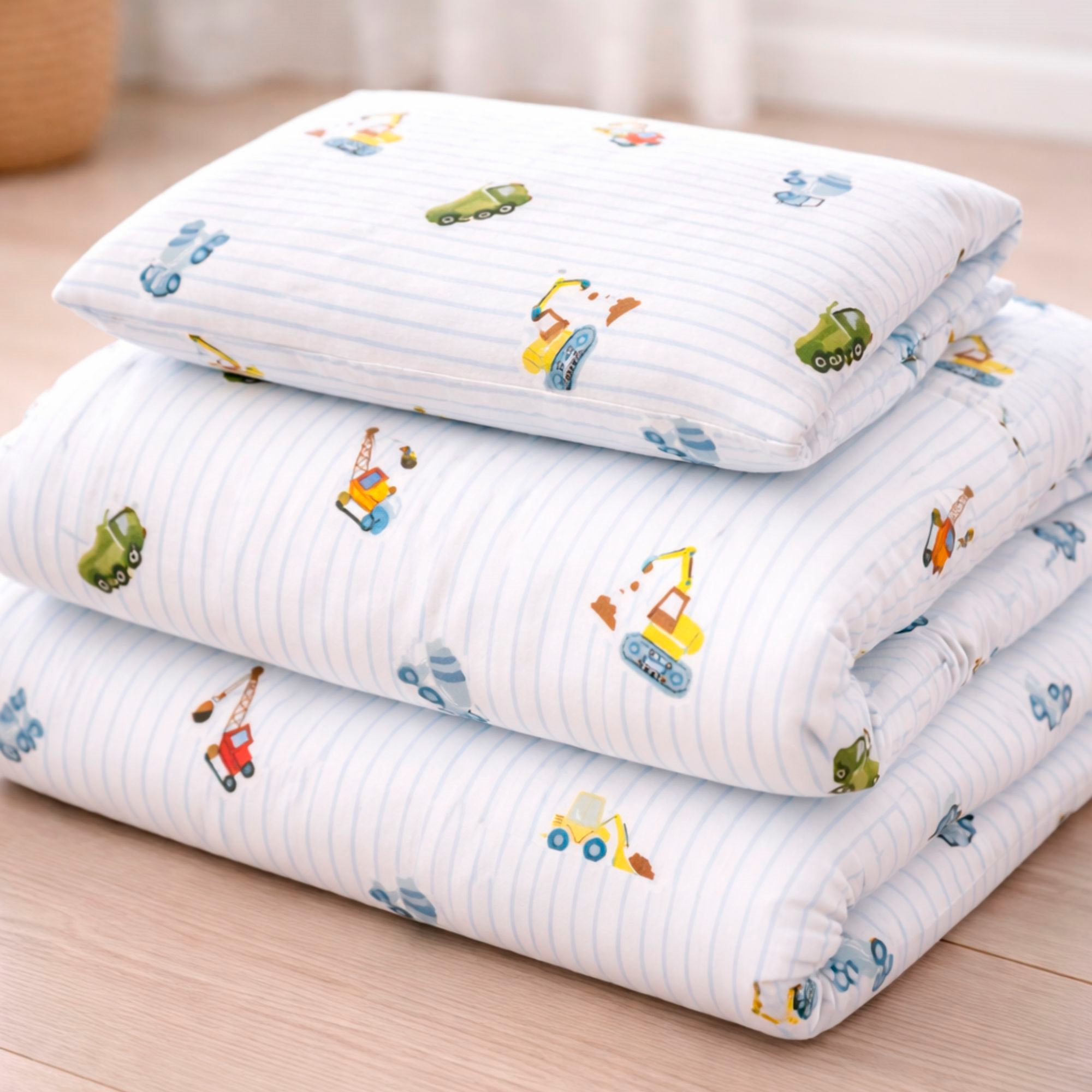 Sengesættet er fremstillet i 100% blød bomuld, som er åndbart og behageligt mod barnets hud. Bomuldens naturlige egenskaber hjælper med at regulere temperaturen i løbet af natten, så dit barn får en komfortabel og rolig søvn - året rundt.