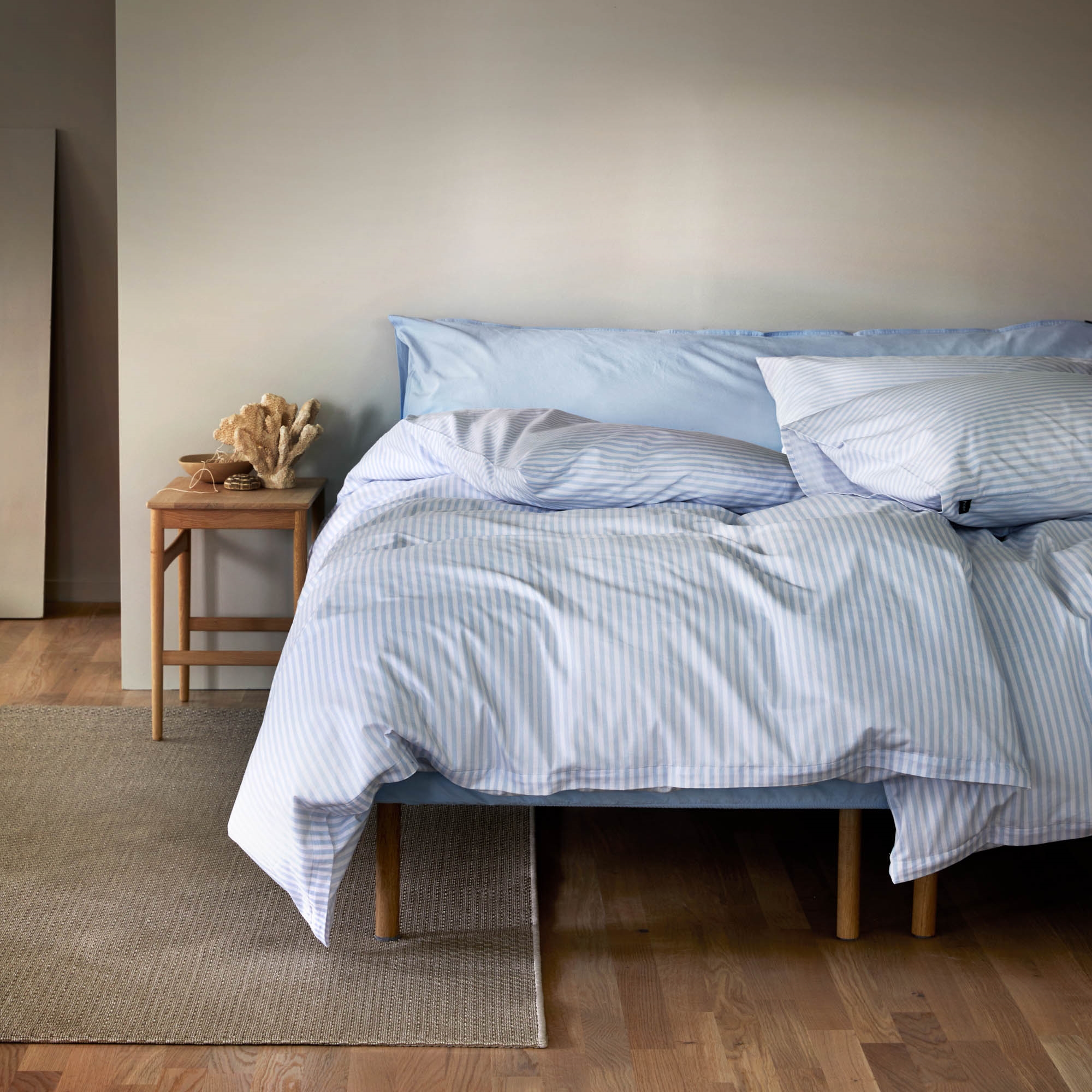 Forside » Sengetøj » Dobbelt sengetøj » Dobbelt sengetøj 200x220 cm Stribet dobbelt sengetøj 200x220 cm - 100% ekstra fin bomuld - Tor light blue - Sengelinned fra Høie of Scandinavia Spar22% Høie Of Scandinavia 899,95699,95DKKSpar 200,- Gratis fragt på denne varePå lager Trustpilot Antal Læg i kurv Se mere fra: Høie Of Scandinavia Artikelnummer: 7965-5 Læs vores sengetøjsguide Se vores store udvalg af lagner Har du spørgsmål til produktet? Blødt og glansfuldtEkstra fin bomuldEASY CARE behandlet - for mindre krøl Dynebetræk: 200x220 cm Pudebetræk: 2 stk. á 60x63 cm Materiale: 100% ekstra fin bomuld Vævning: Ekstra fin 220TC (Thread count = antal tråde pr. kvadrattomme) Farve: Lyseblå Design: Tor Light Blue Brand: Høie of Scandinavia Lukning: Dynebetræk med lynlås, pudebetræk med overlap Vask: 60° Tørretumbling: Ja Tåler strygning: Ja Certificering: EASY CARE behandlet, hvilket betyder det ikke krøller efter vask Certificering: STANDARD 100 by OEKO-TEX® (M27MV9610 OETI). Din garanti for at produktet er fri for sundhedsskadelig kemi. Blødt dobbelt sengetøj i 100% ekstra fin bomuld, som føles blødt mod huden. Den tætte vævning giver en glat overflade og gør sættet åndbart og slidstærkt. Det rolige og enkle design gør at sengesættet passer ind i de fleste soveværelser. Bomuld er et naturligt materiale, der sikrer en komfortabel temperatur hele natten. Dette stribet sengesæt til dobbeltdyne er produceret af 100% ekstra fin bomuld, som er blødt og ikke mindst giver en glat overfalde. Den ekstra fine bomuld er kendt for sin renhed og store slidstyrke. Sengesættet er ikke kun blødt og behageligt, men også utroligt slidstærkt, let og hurtigtørrende. Dette smukke og elegante sengetøj er produceret med høj farveægtehed. Sengesættet er OEKO-TEX certificeret, hvilket betyder, at det er testet fri for sundhedsskadelige kemikalier. Dette er et tegn på ansvarlig produktion, som ikke kun gavner miljøet, men også for vores krop og hud, da det reducerer risikoen for allergiske reaktioner. Derudover er sengelinned også Easy Care behandlet, for mindre krøl og bedre facon vask efter vask. Easy Care gør dit sengetøj ekstra komfortabelt og let at stryge. Se det store sortiment fra Høie her Høie er et Skandinavisk brand som står for tradition forenet med nytænkning. Firmaet har eksisteret siden 1850 og har gennem årene været med til at forme og udvikle Skandinavisk tekstil og designs. Sengetøj fra Høie, er hverdags luksus som alle fortjener. Find kvalitets lagner her Tilbage til Dobbelt sengetøj 200x220 cm